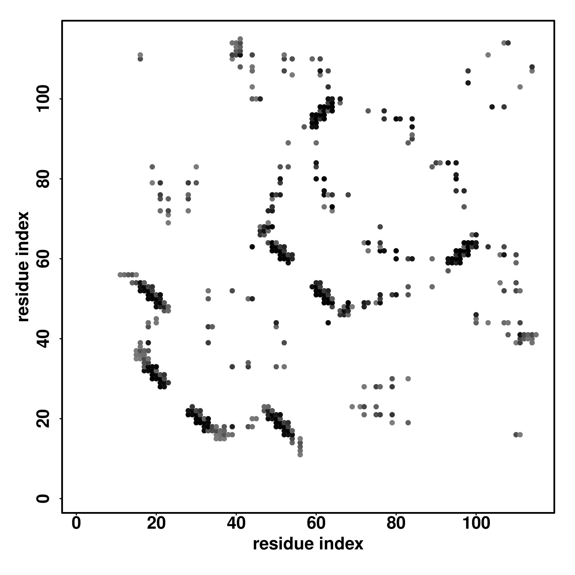 For the contact map, each dot represents a residue pair with predicted contact,