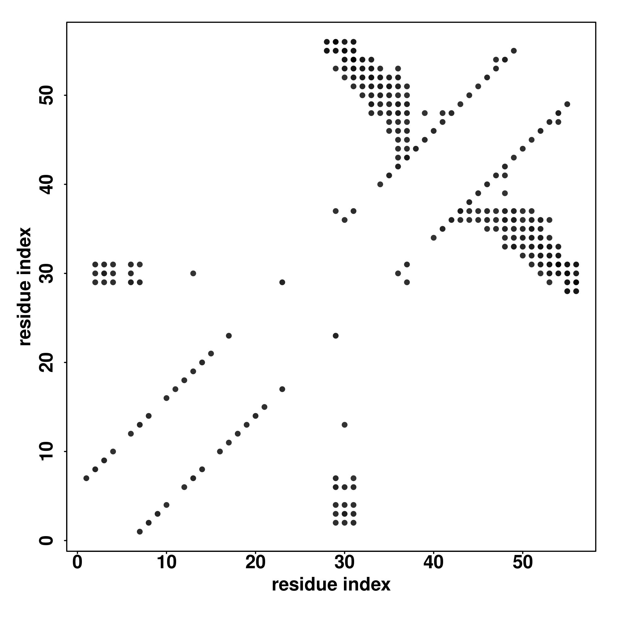 For the contact map, each dot represents a residue pair with predicted contact,
