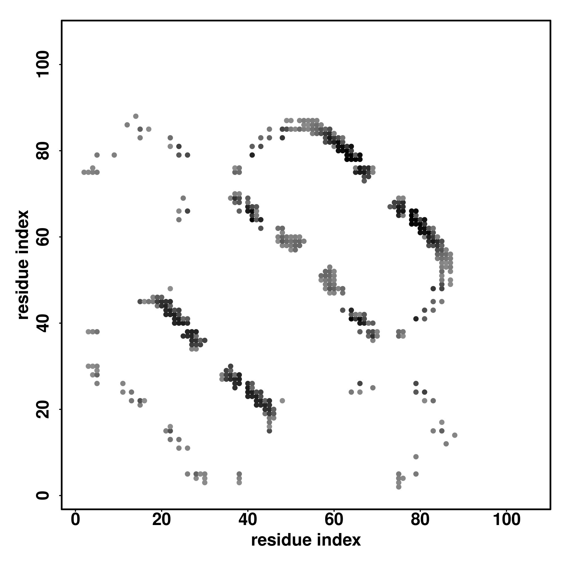 For the contact map, each dot represents a residue pair with predicted contact,