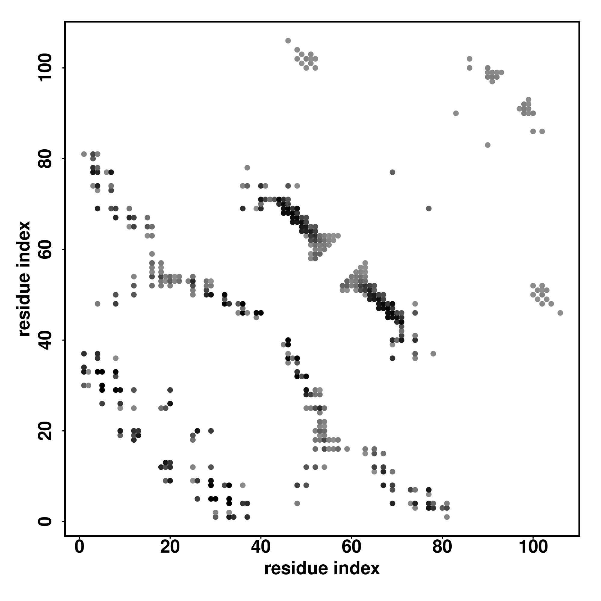 For the contact map, each dot represents a residue pair with predicted contact,