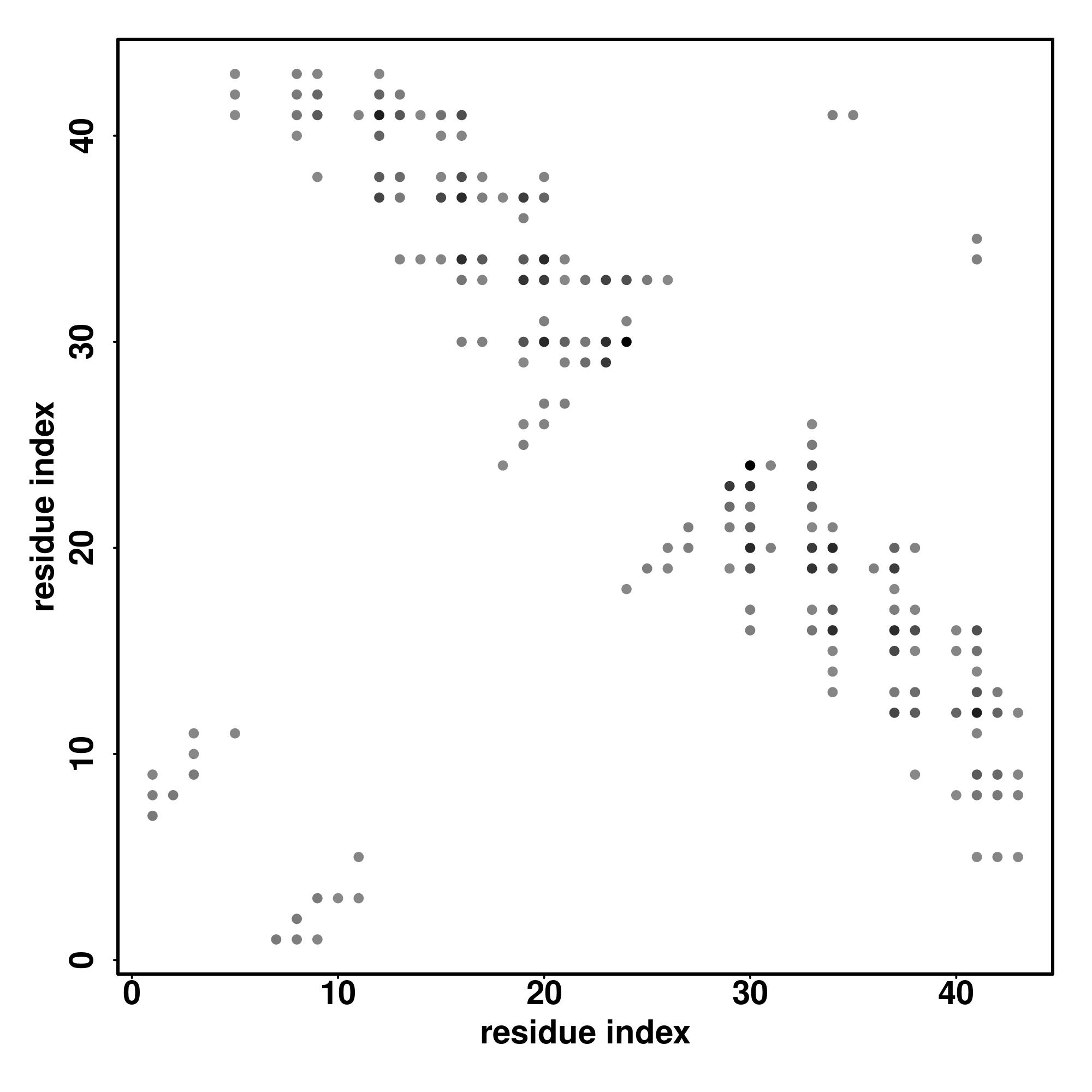 For the contact map, each dot represents a residue pair with predicted contact,