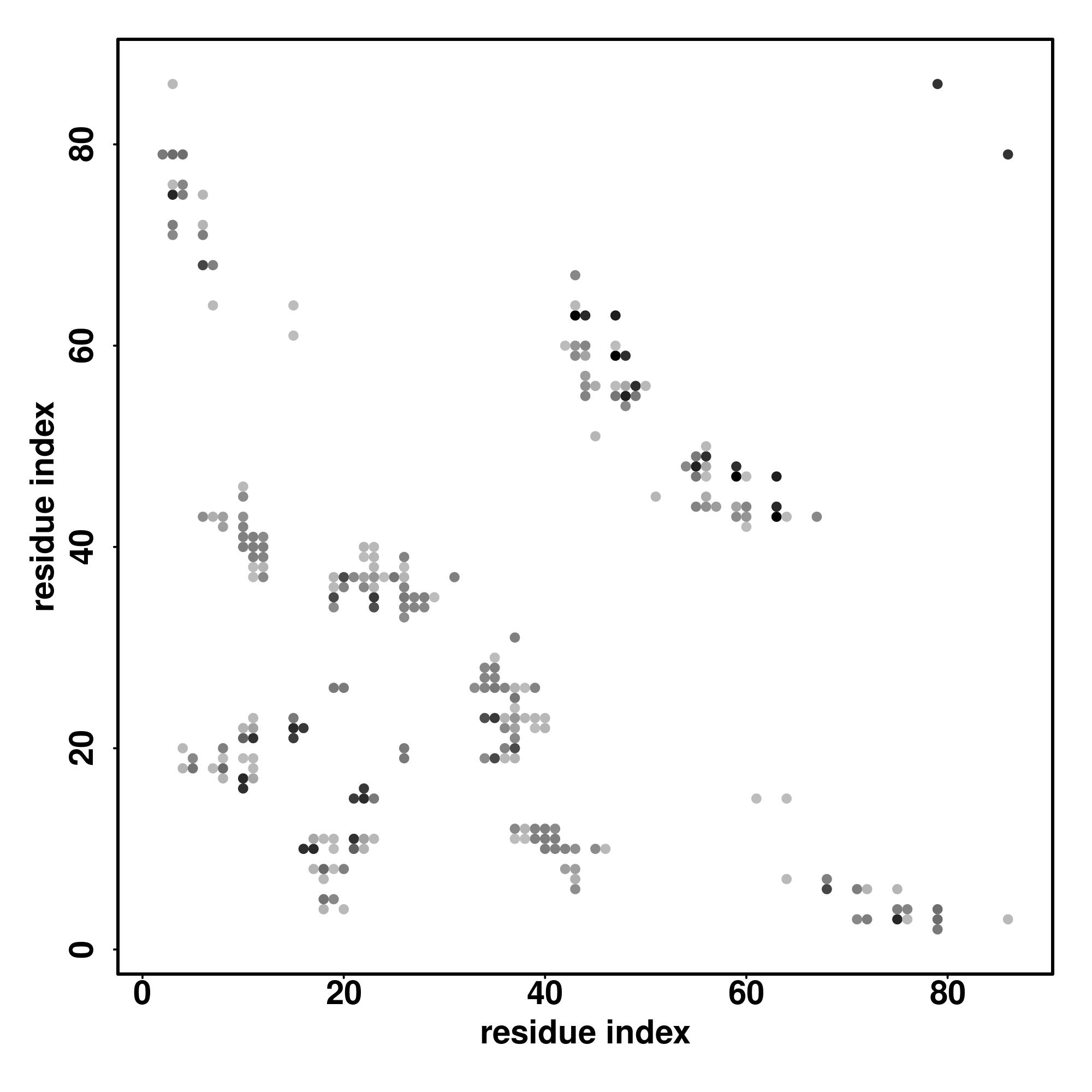 For the contact map, each dot represents a residue pair with predicted contact,