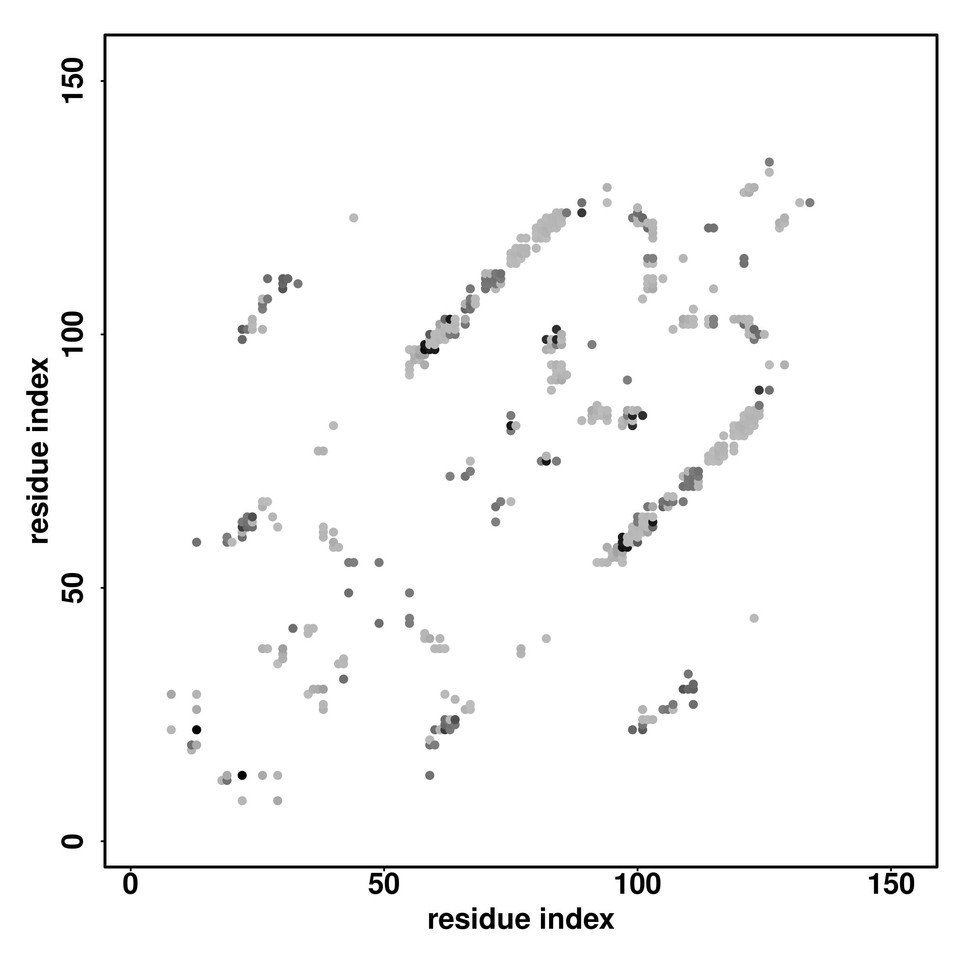 For the contact map, each dot represents a residue pair with predicted contact,