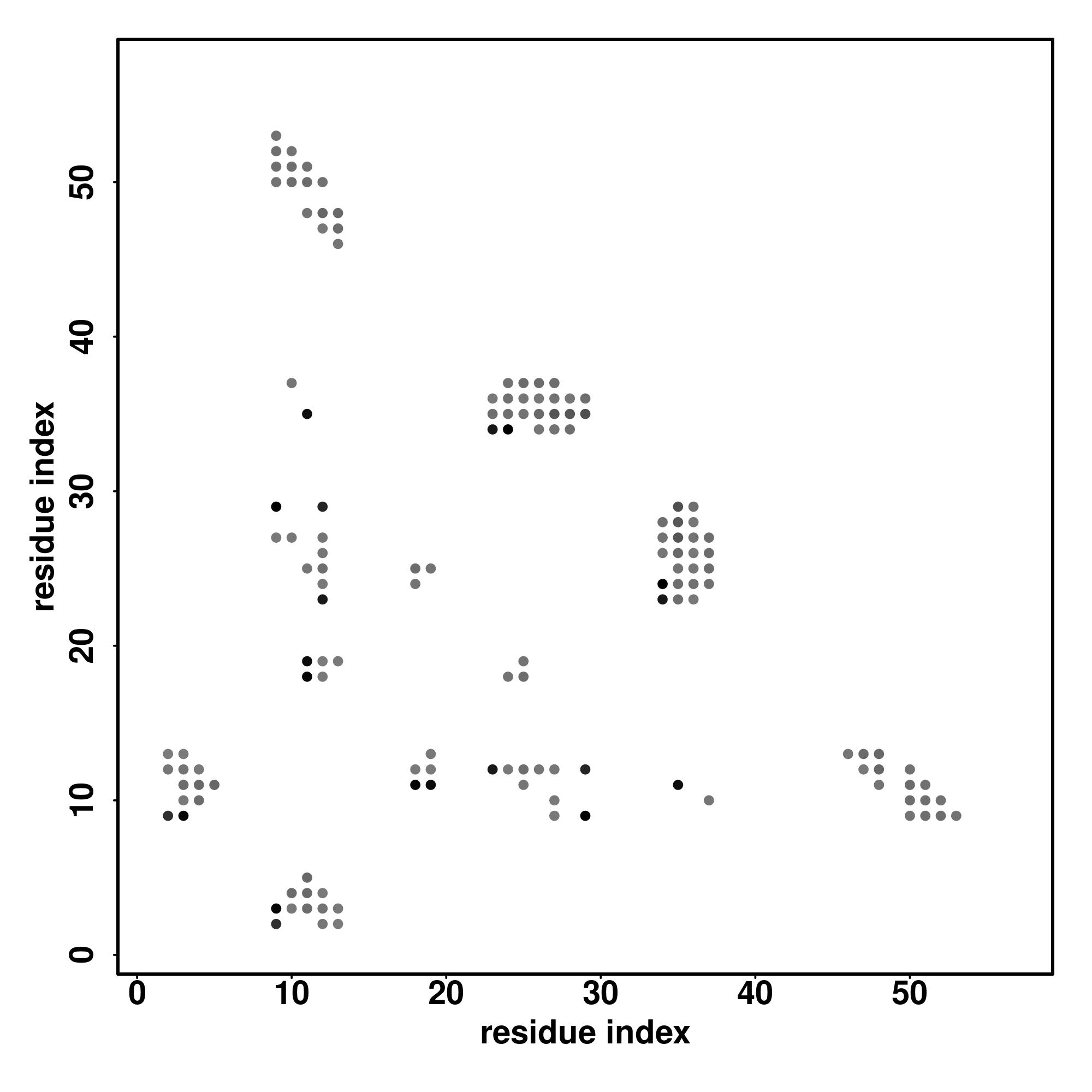 For the contact map, each dot represents a residue pair with predicted contact,