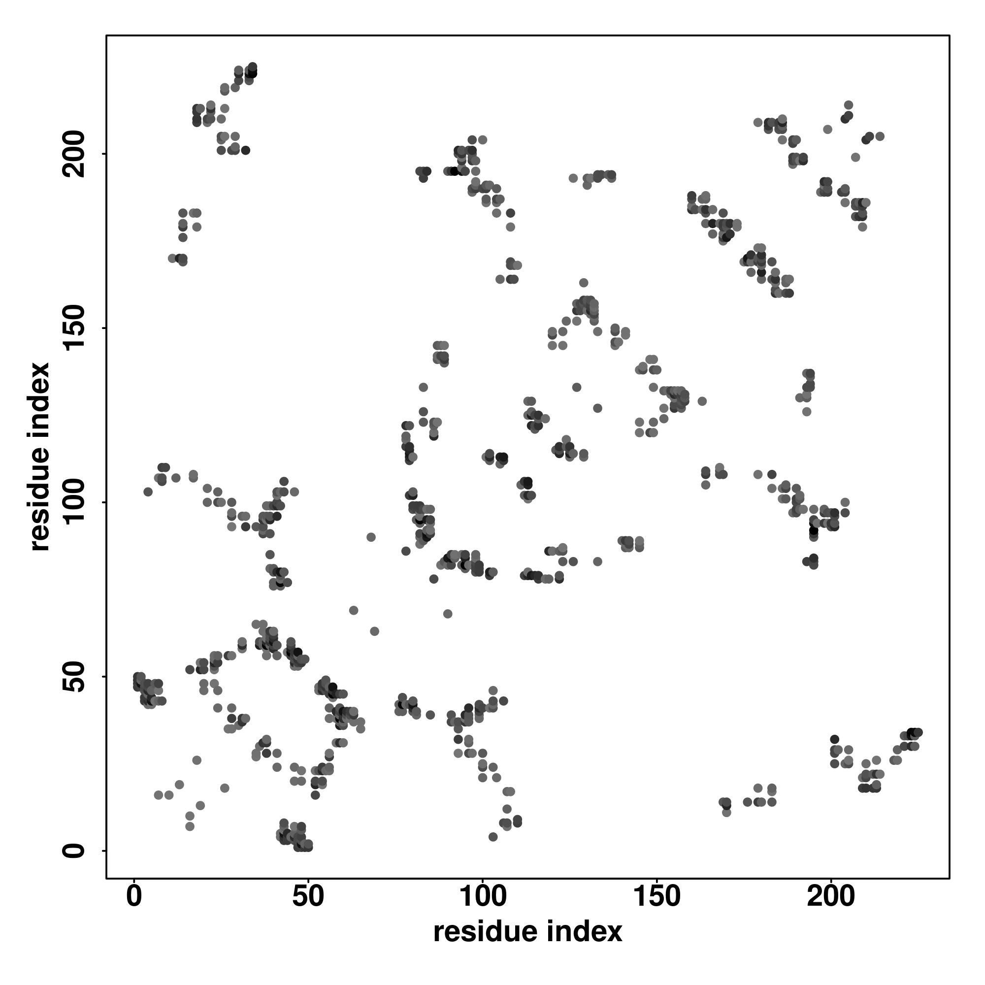 | Values range from 0 (buried residue) to 8 (highly exposed residue) | |