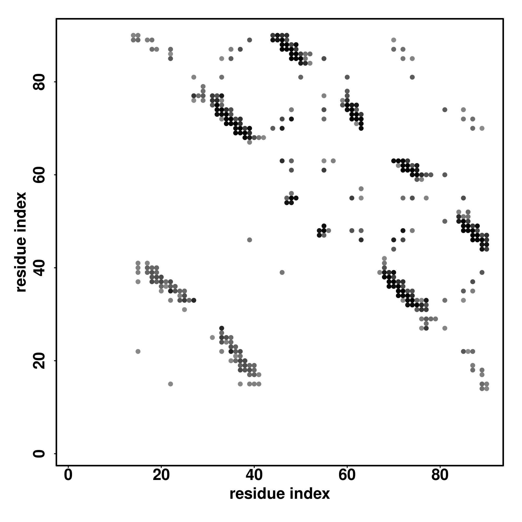 For the contact map, each dot represents a residue pair with predicted contact,