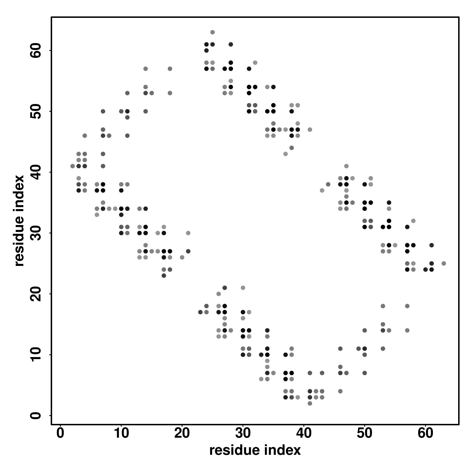 For the contact map, each dot represents a residue pair with predicted contact,