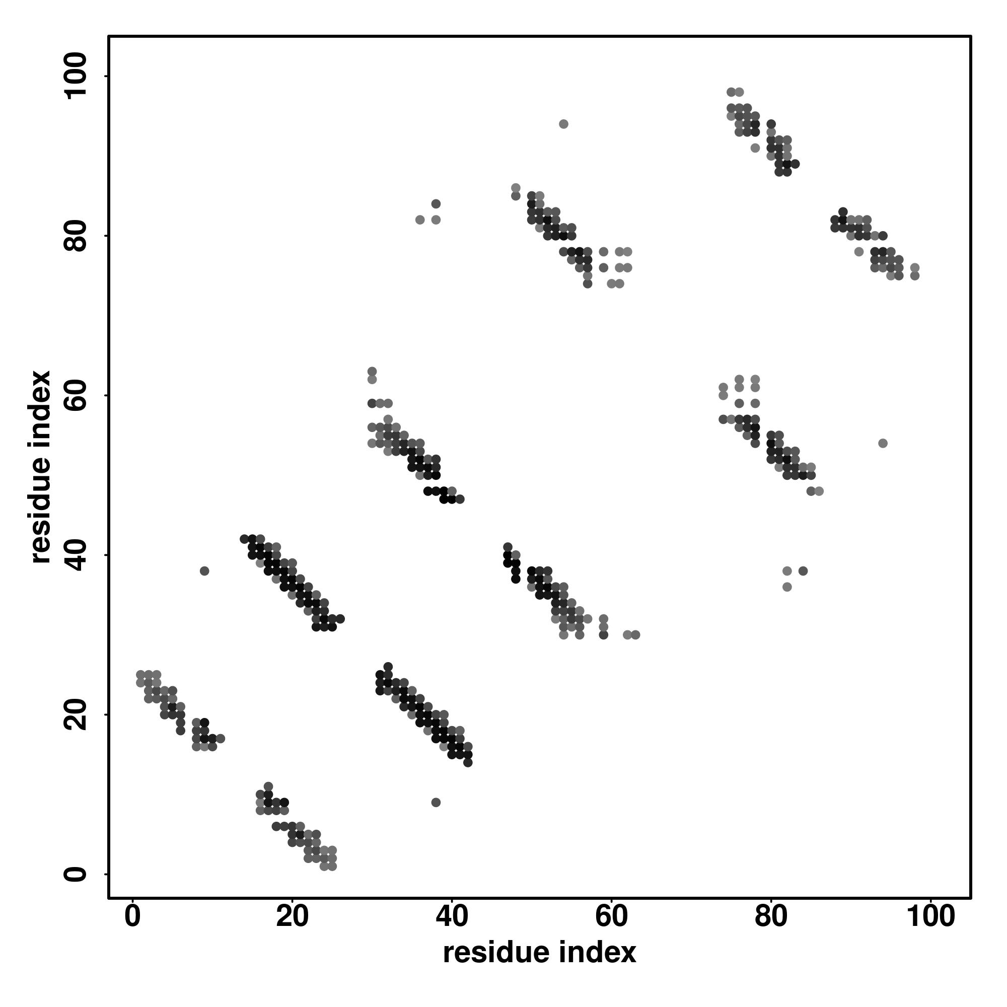 For the contact map, each dot represents a residue pair with predicted contact,