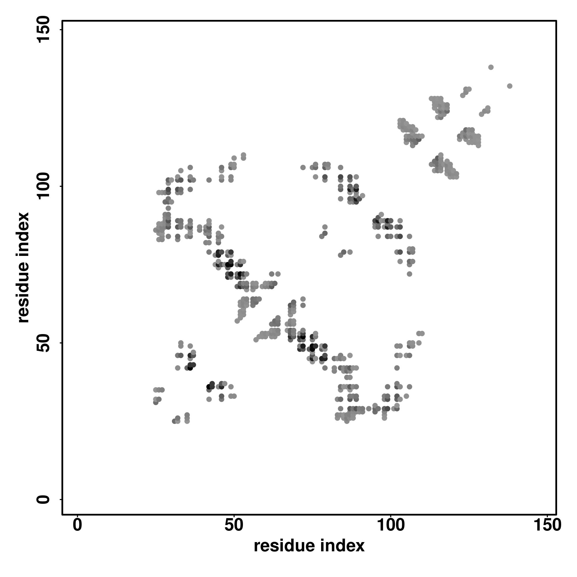 For the contact map, each dot represents a residue pair with predicted contact,