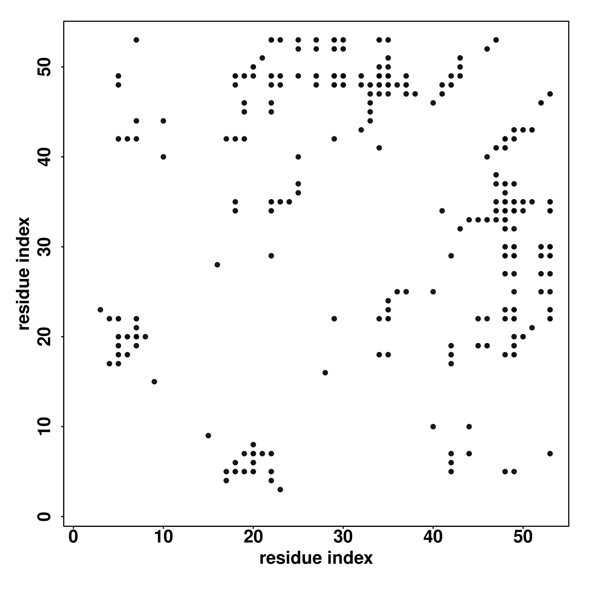 For the contact map, each dot represents a residue pair with predicted contact,