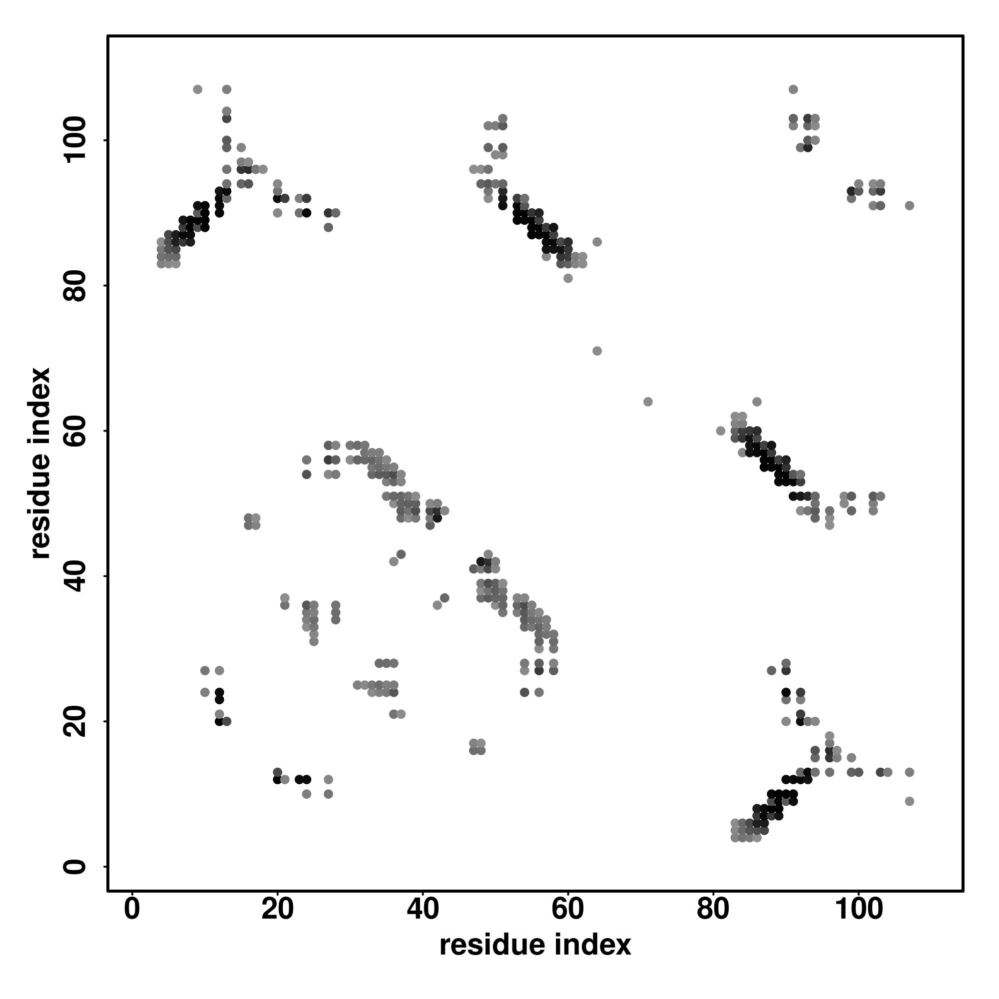 For the contact map, each dot represents a residue pair with predicted contact,