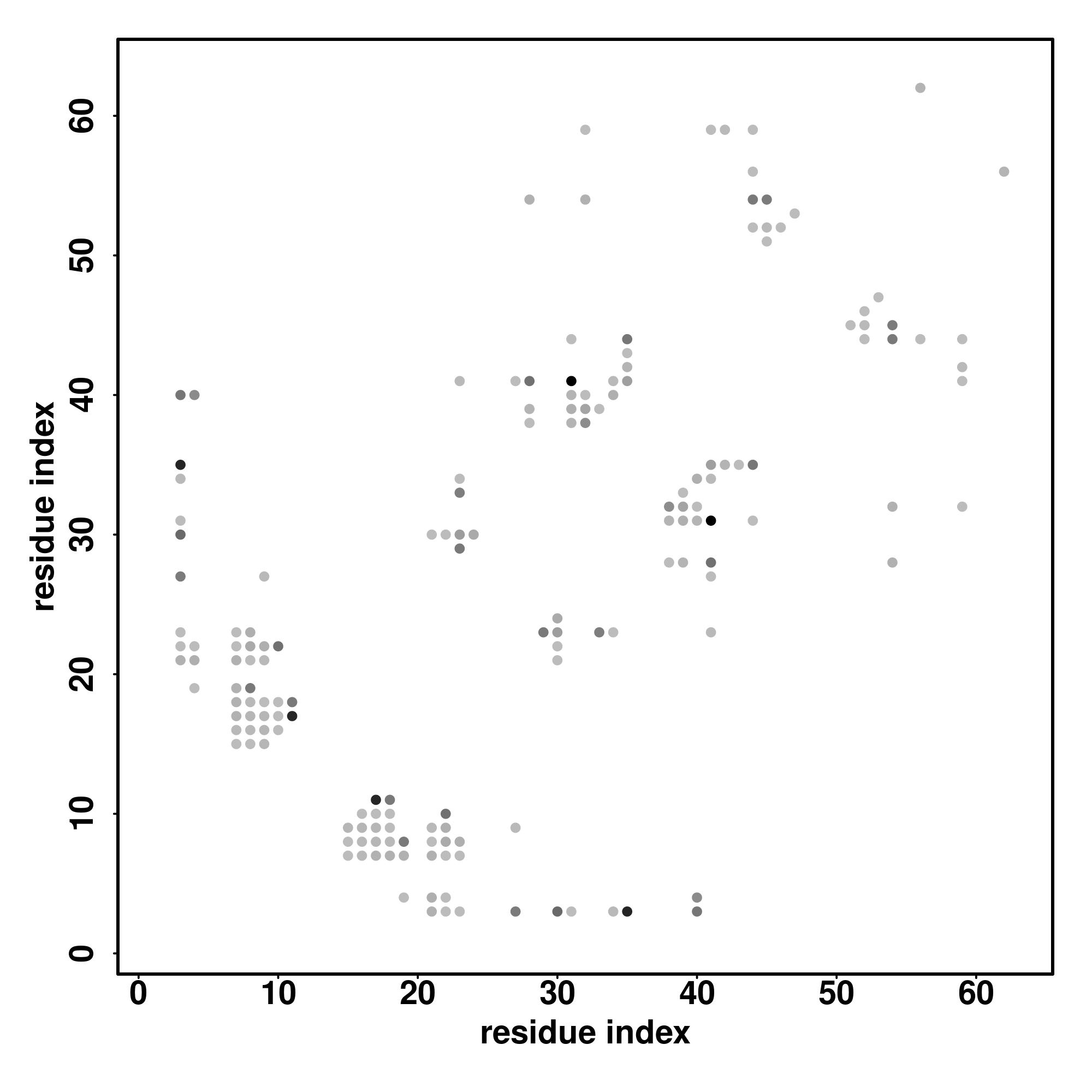 For the contact map, each dot represents a residue pair with predicted contact,