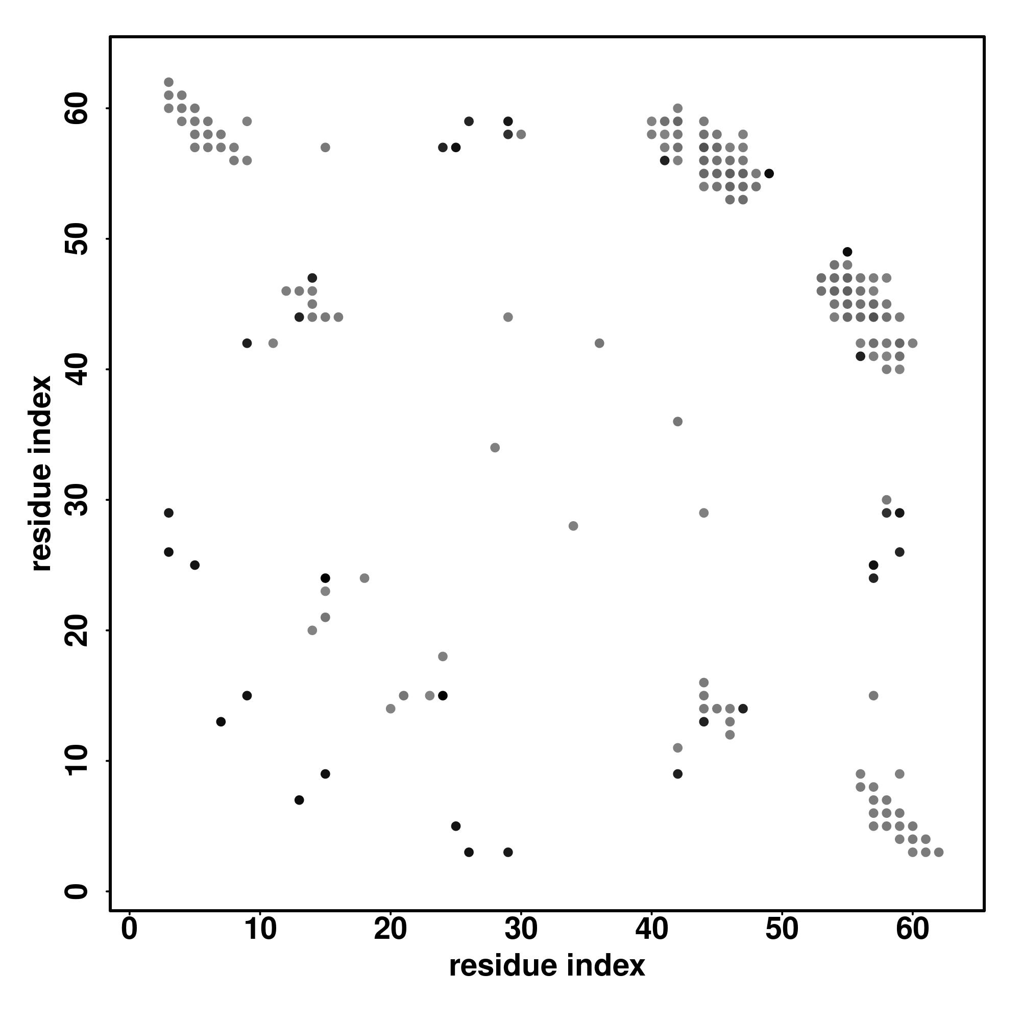 For the contact map, each dot represents a residue pair with predicted contact,