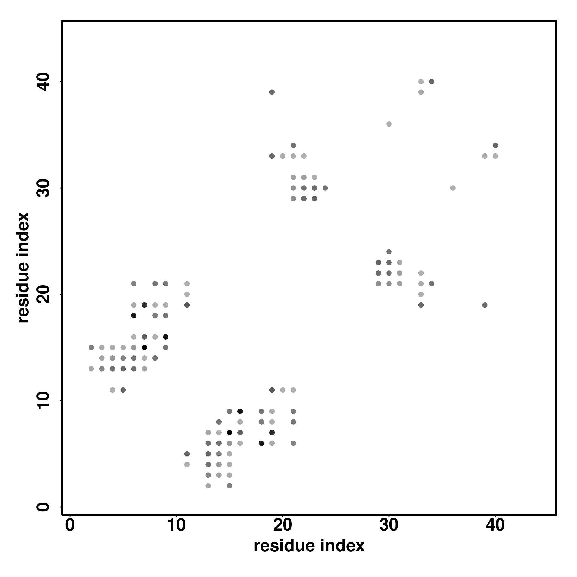 For the contact map, each dot represents a residue pair with predicted contact,