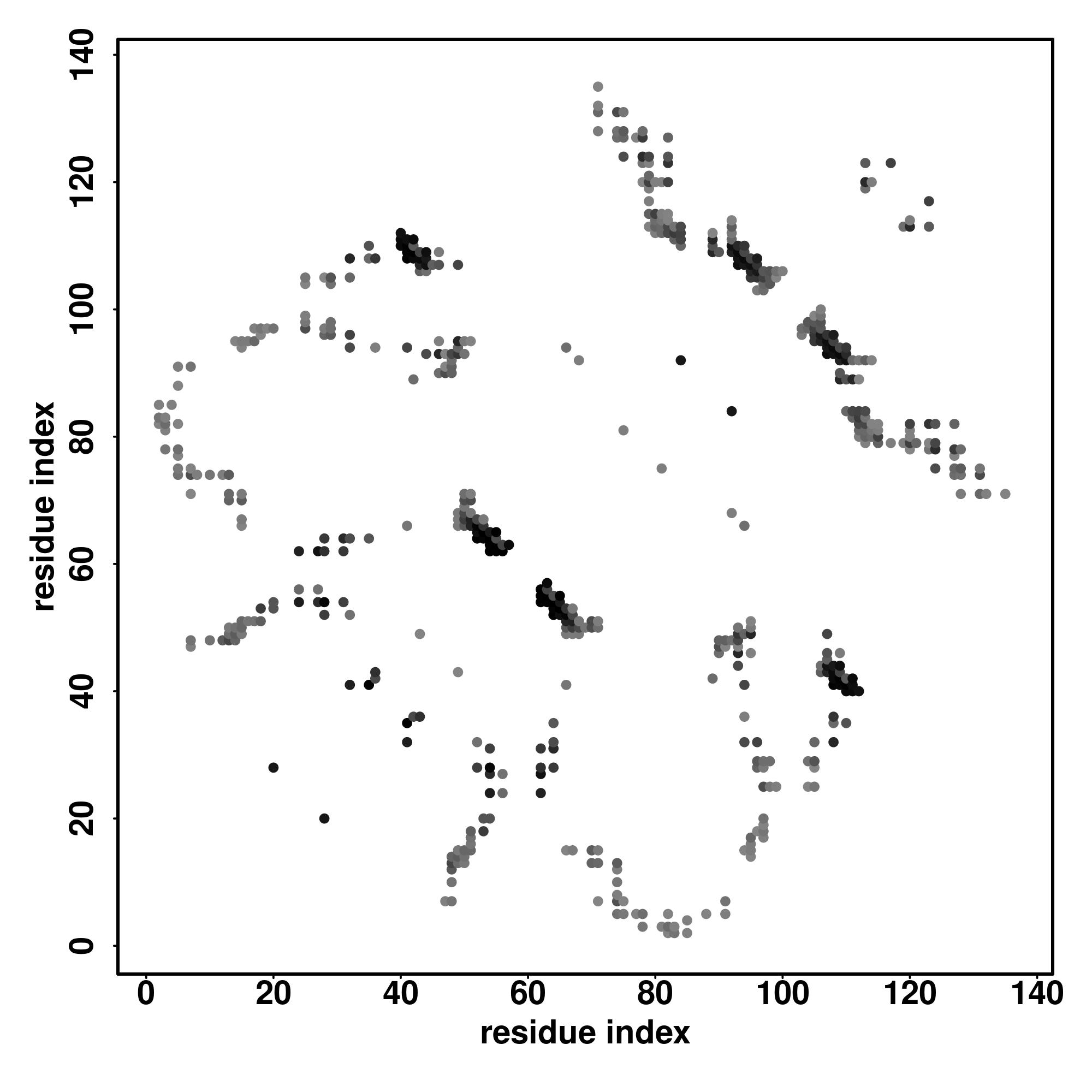 For the contact map, each dot represents a residue pair with predicted contact,