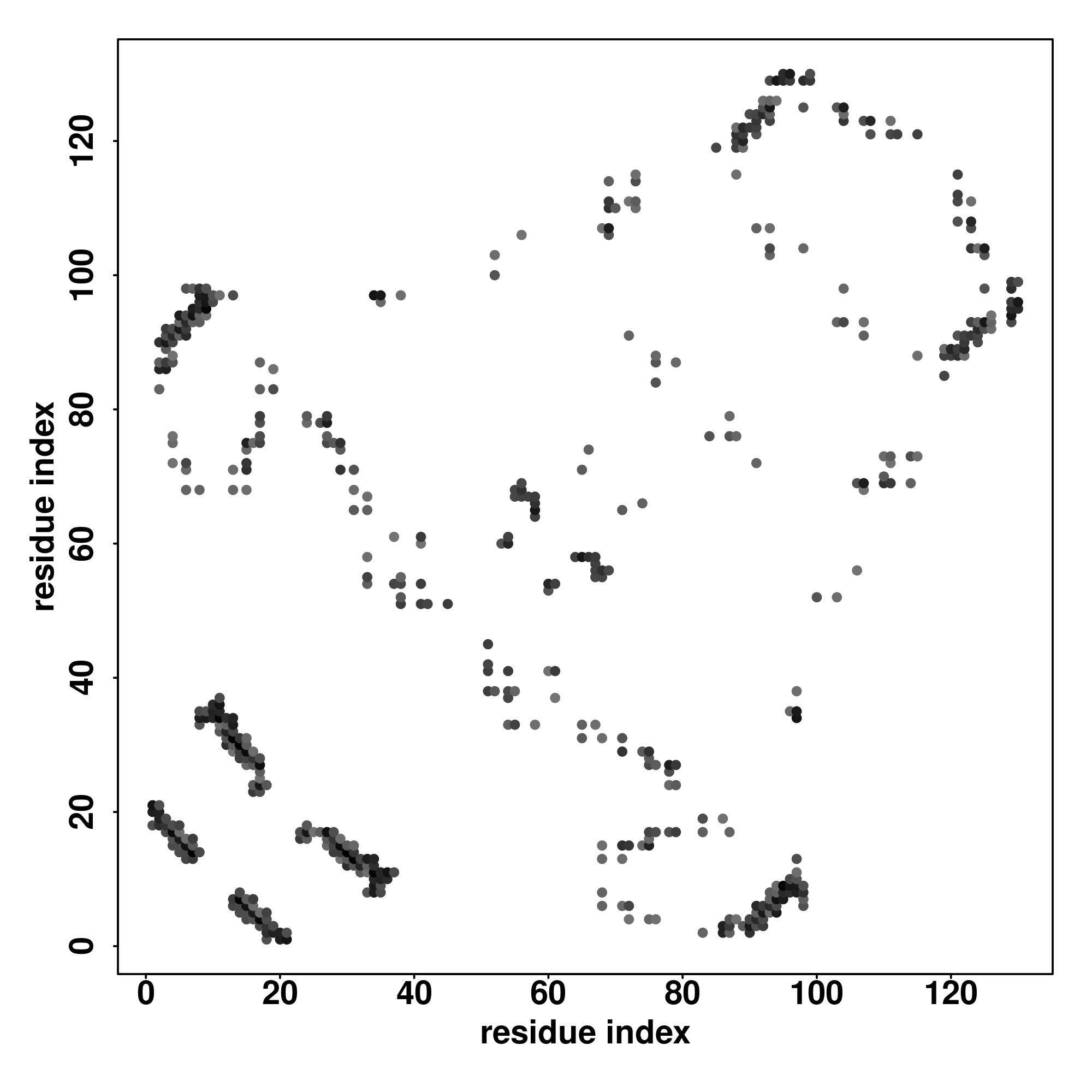 | Values range from 0 (buried residue) to 8 (highly exposed residue) | |