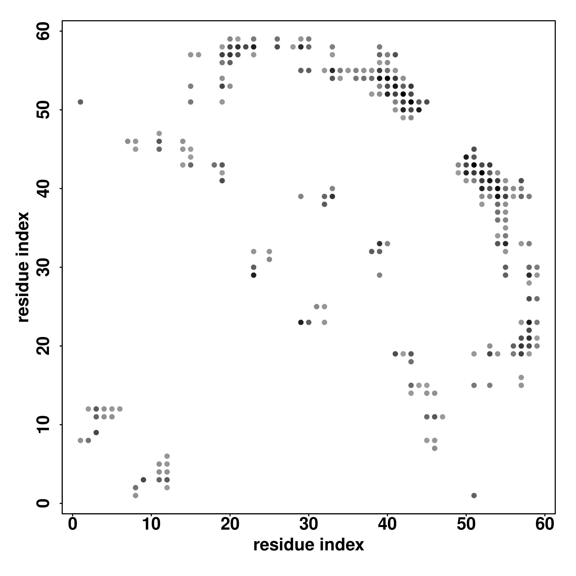 For the contact map, each dot represents a residue pair with predicted contact,