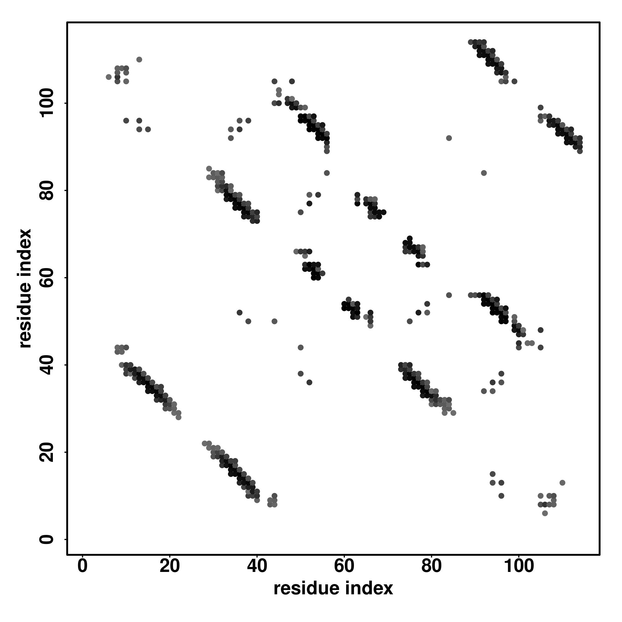 For the contact map, each dot represents a residue pair with predicted contact,
