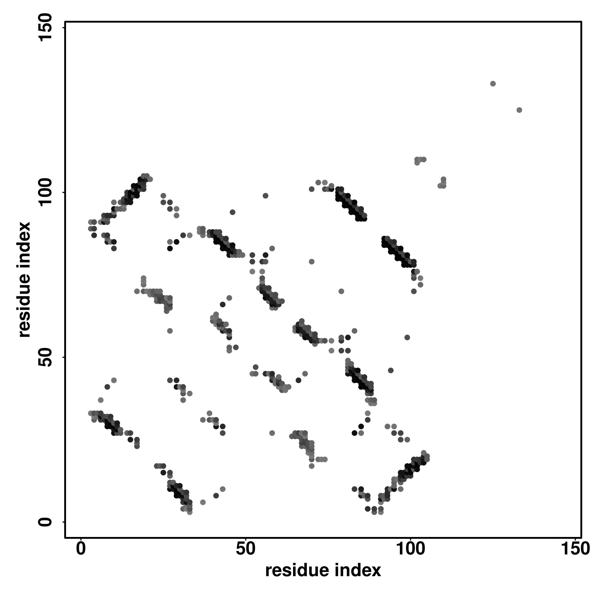 For the contact map, each dot represents a residue pair with predicted contact,