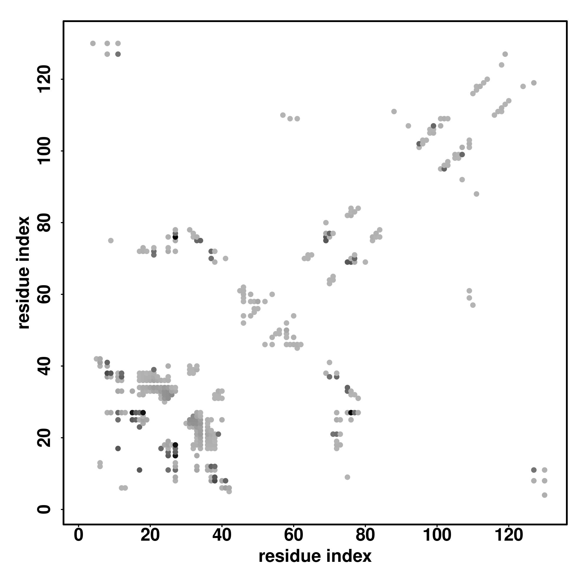 For the contact map, each dot represents a residue pair with predicted contact,