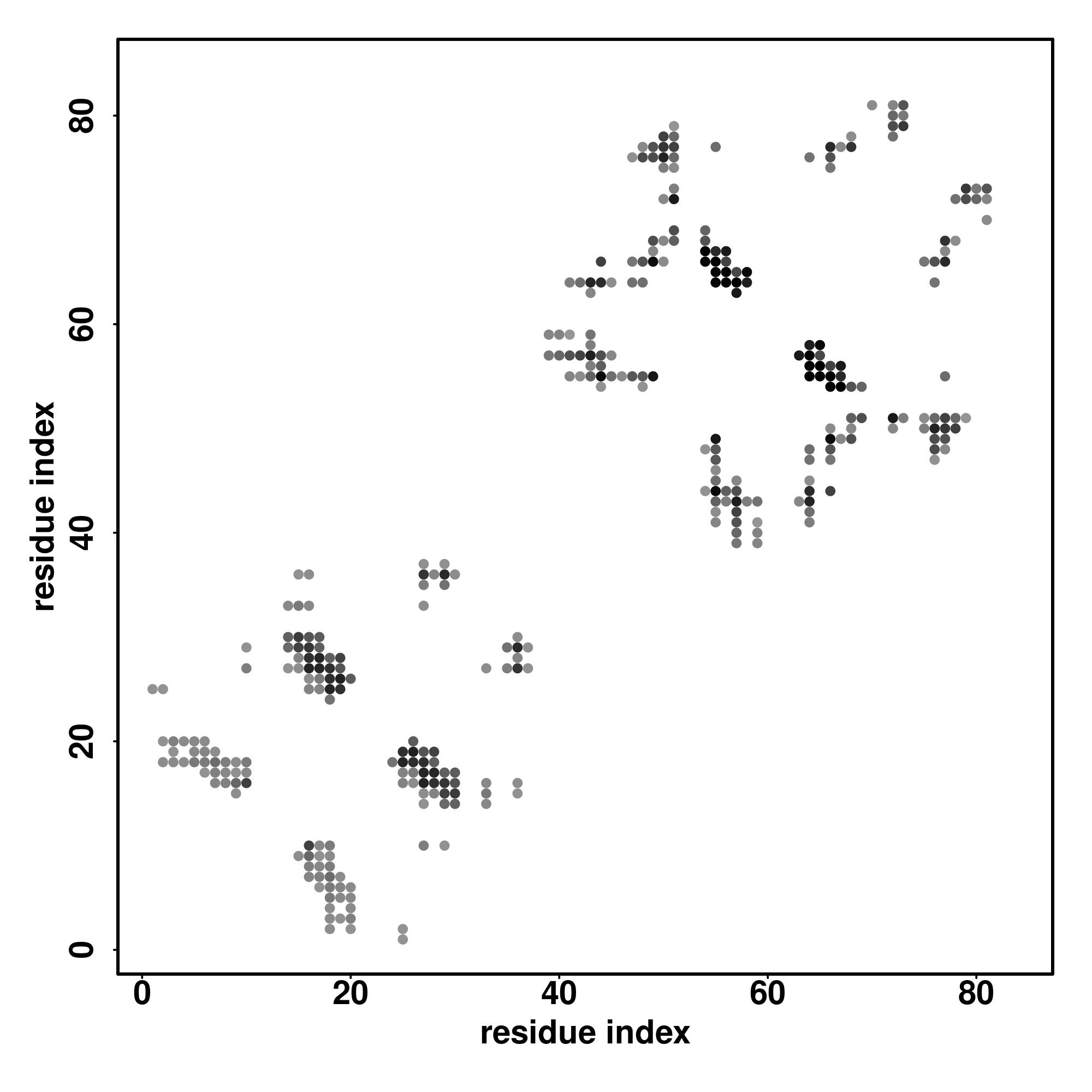 For the contact map, each dot represents a residue pair with predicted contact,