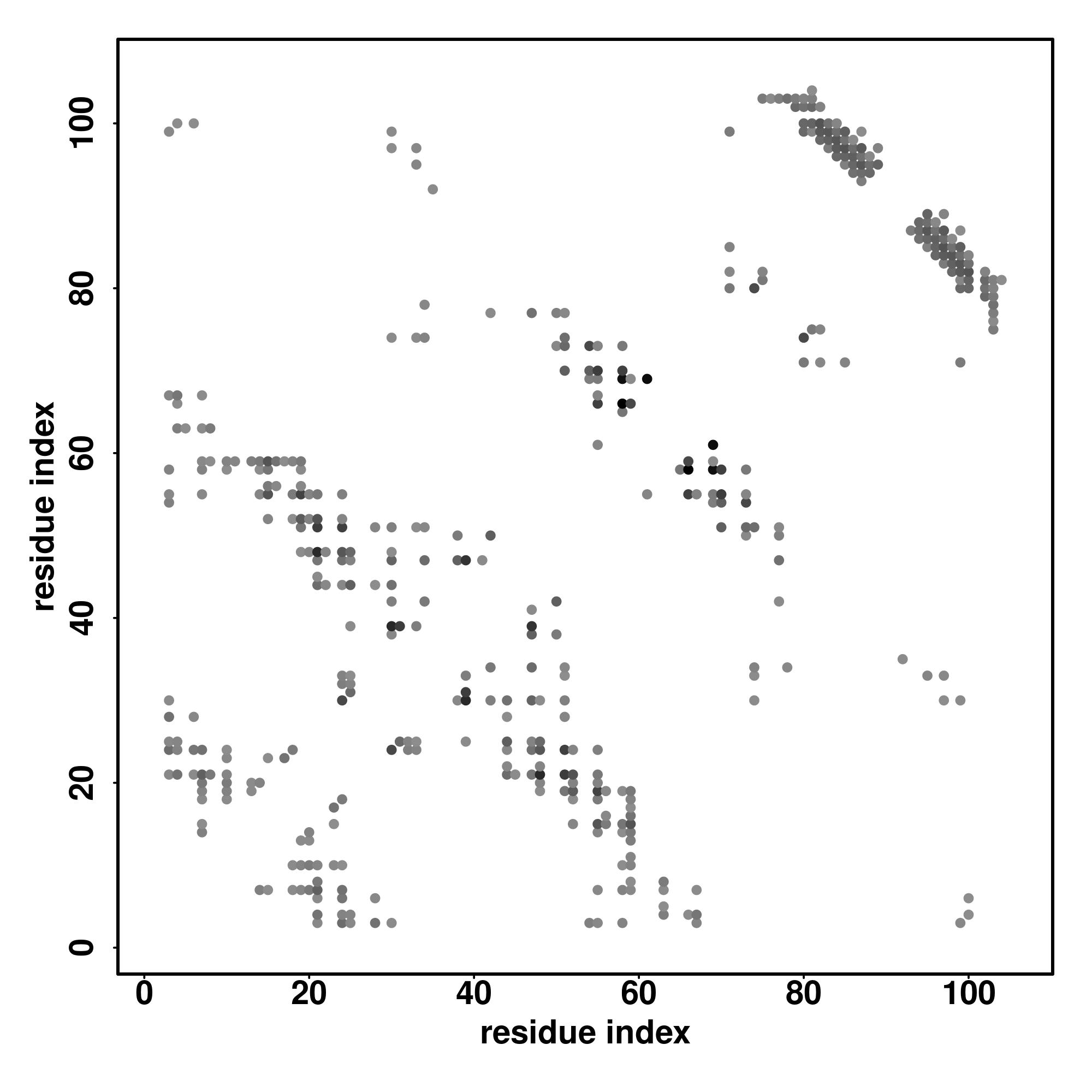 For the contact map, each dot represents a residue pair with predicted contact,
