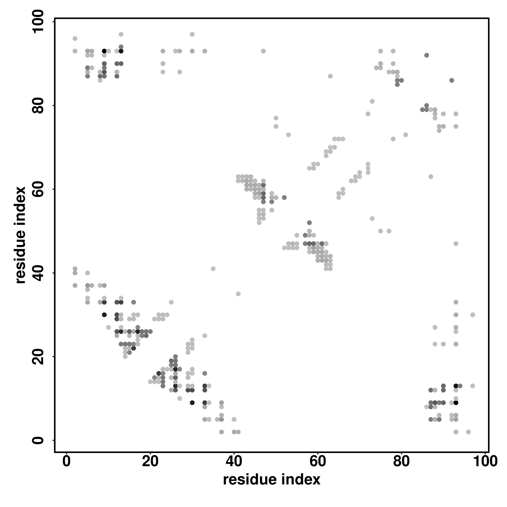 For the contact map, each dot represents a residue pair with predicted contact,