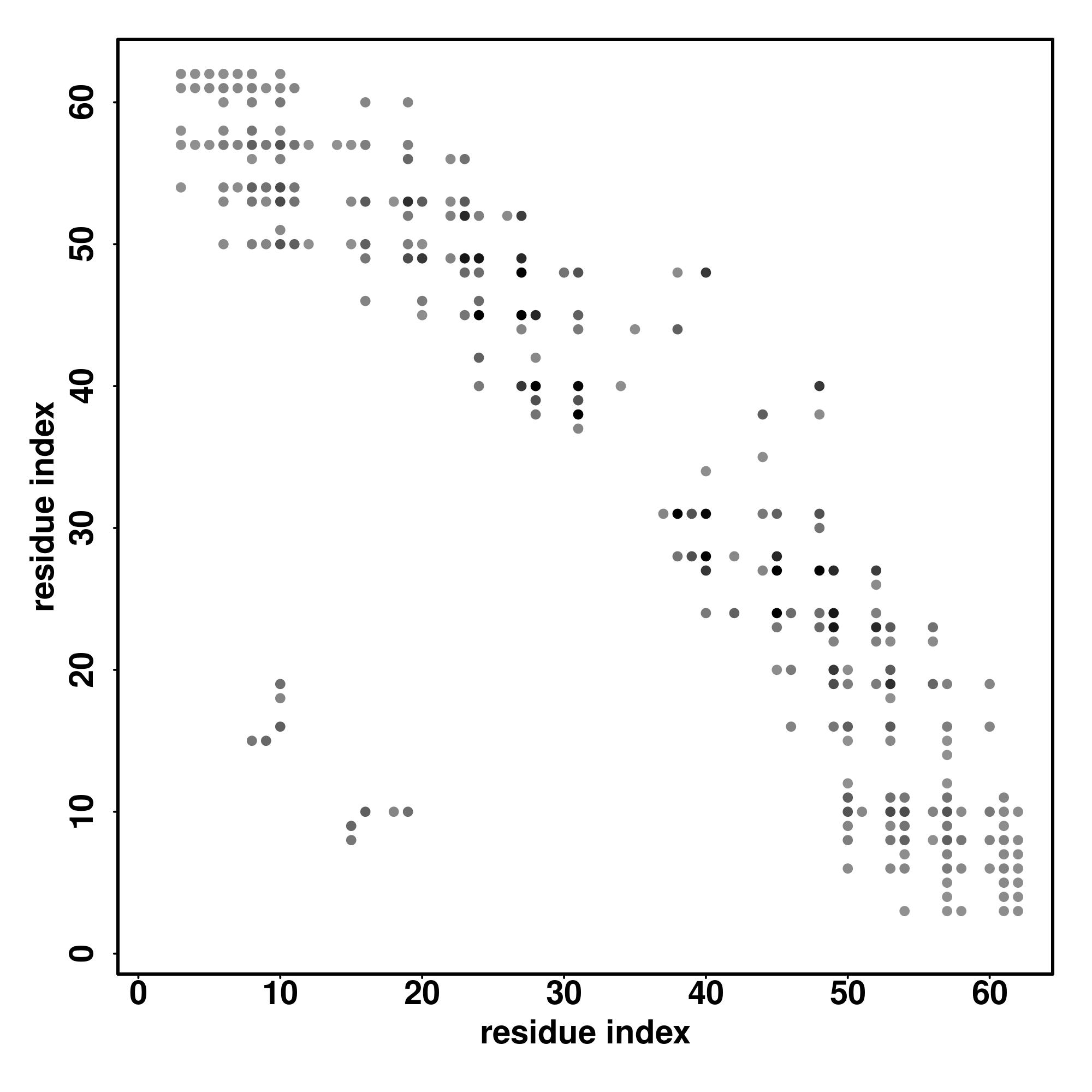 For the contact map, each dot represents a residue pair with predicted contact,