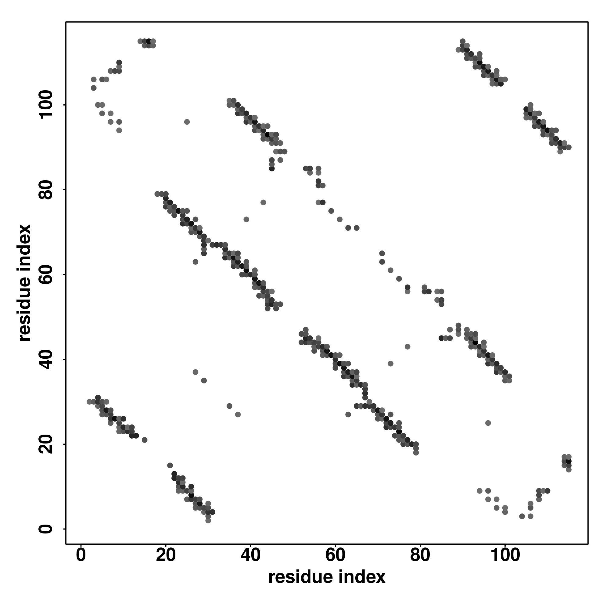 For the contact map, each dot represents a residue pair with predicted contact,