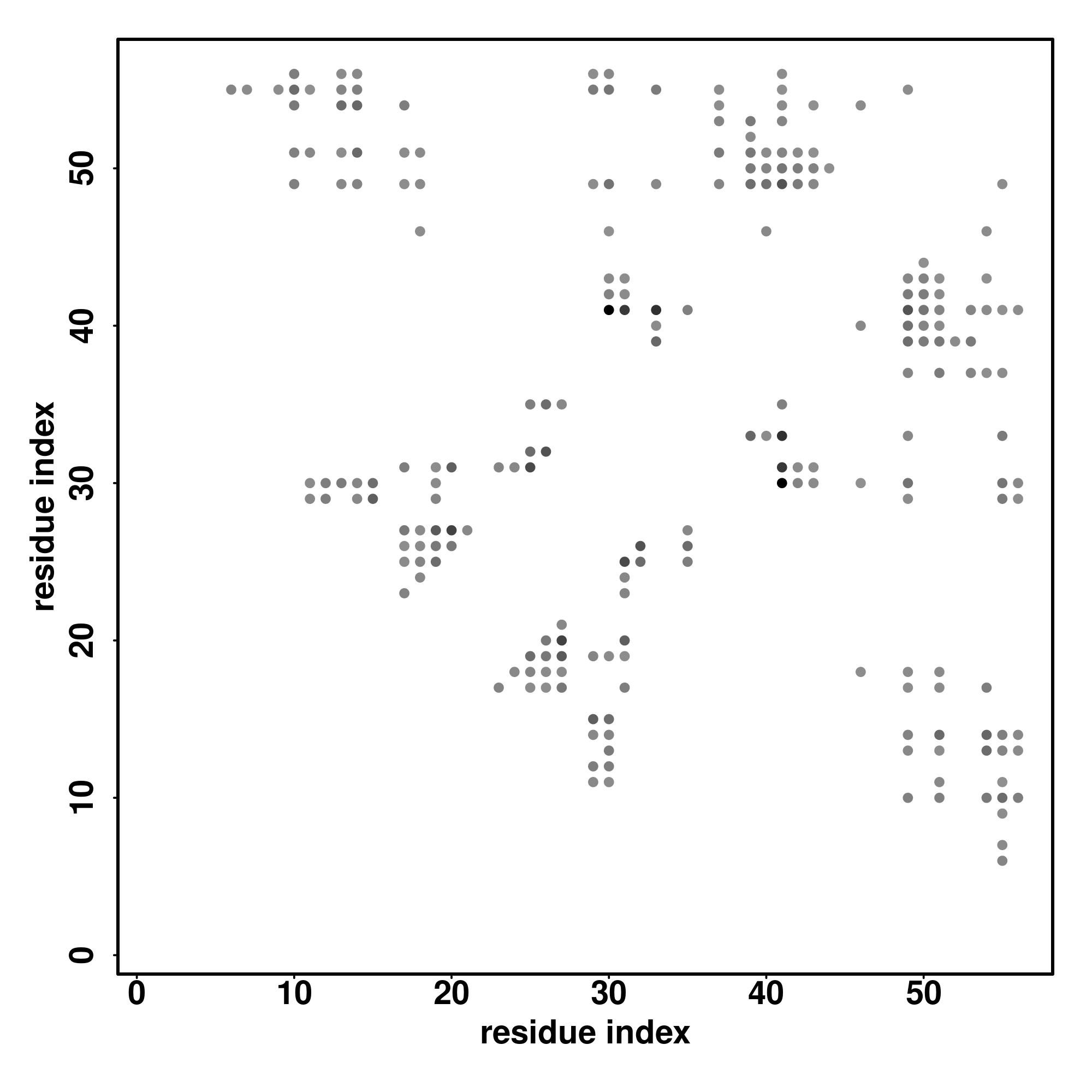 For the contact map, each dot represents a residue pair with predicted contact,