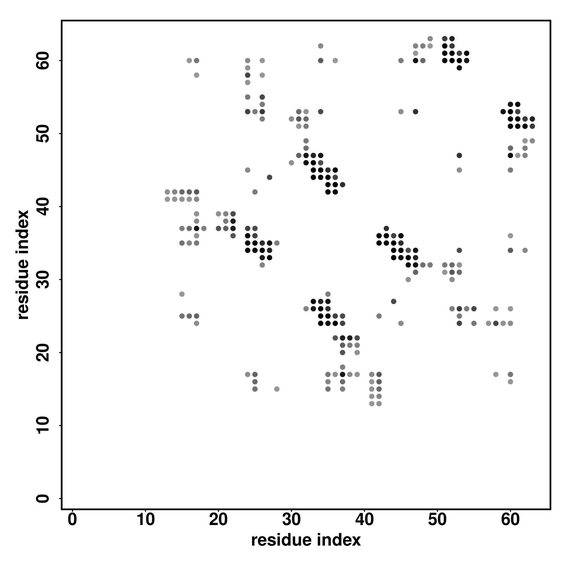 For the contact map, each dot represents a residue pair with predicted contact,