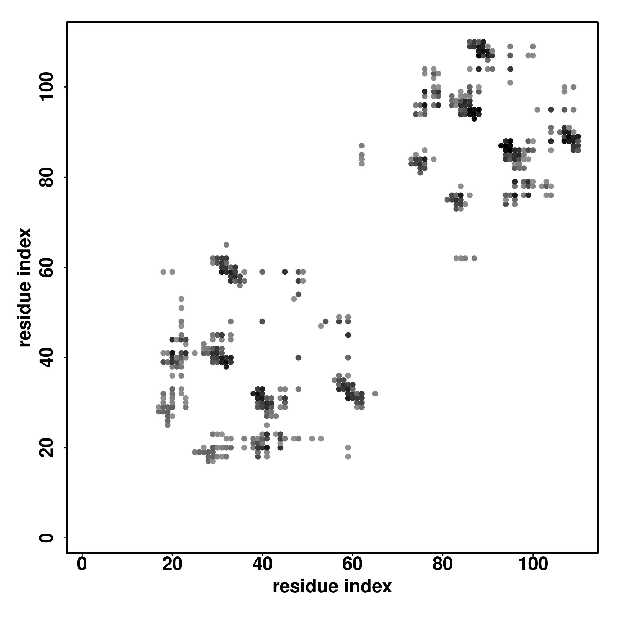 For the contact map, each dot represents a residue pair with predicted contact,