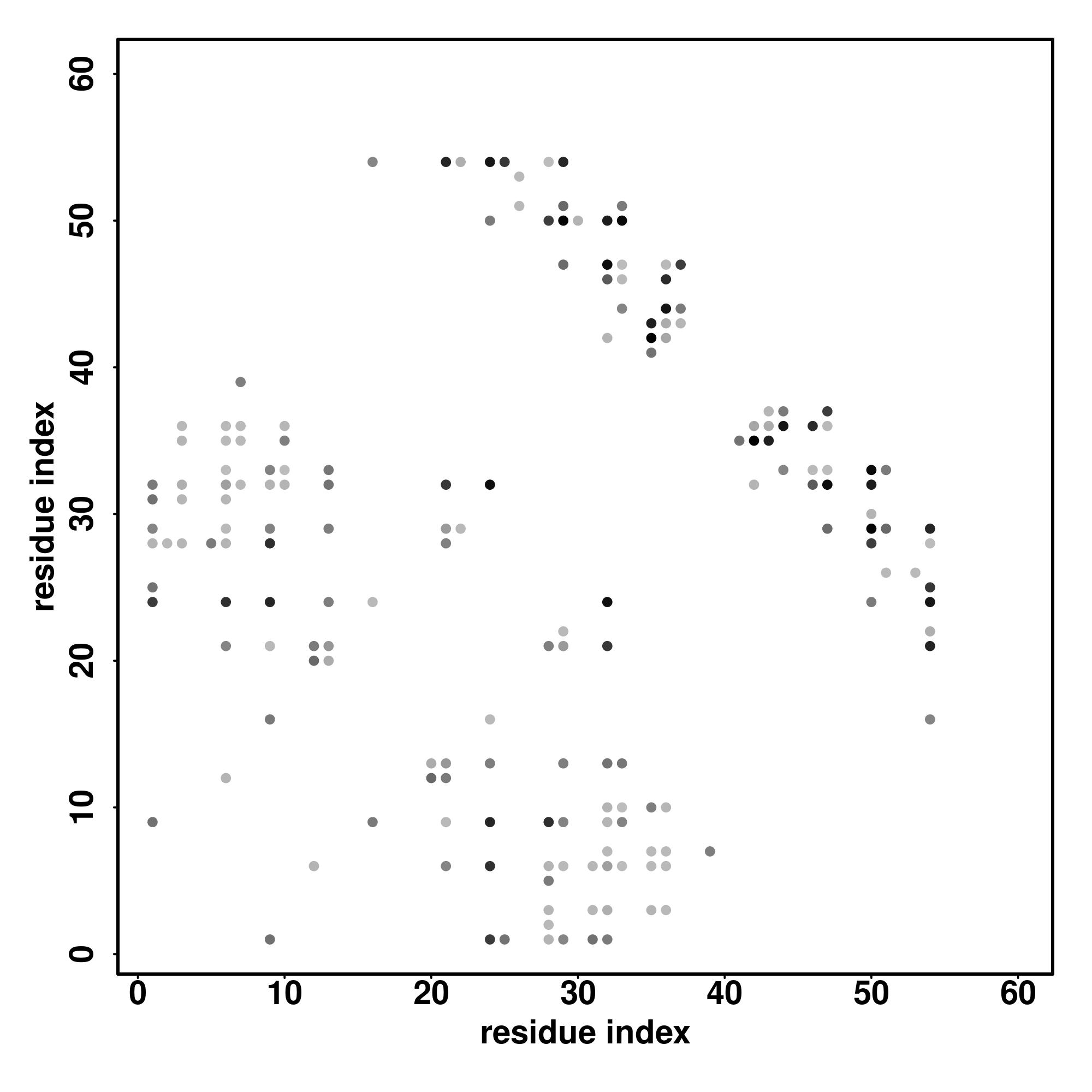 For the contact map, each dot represents a residue pair with predicted contact,