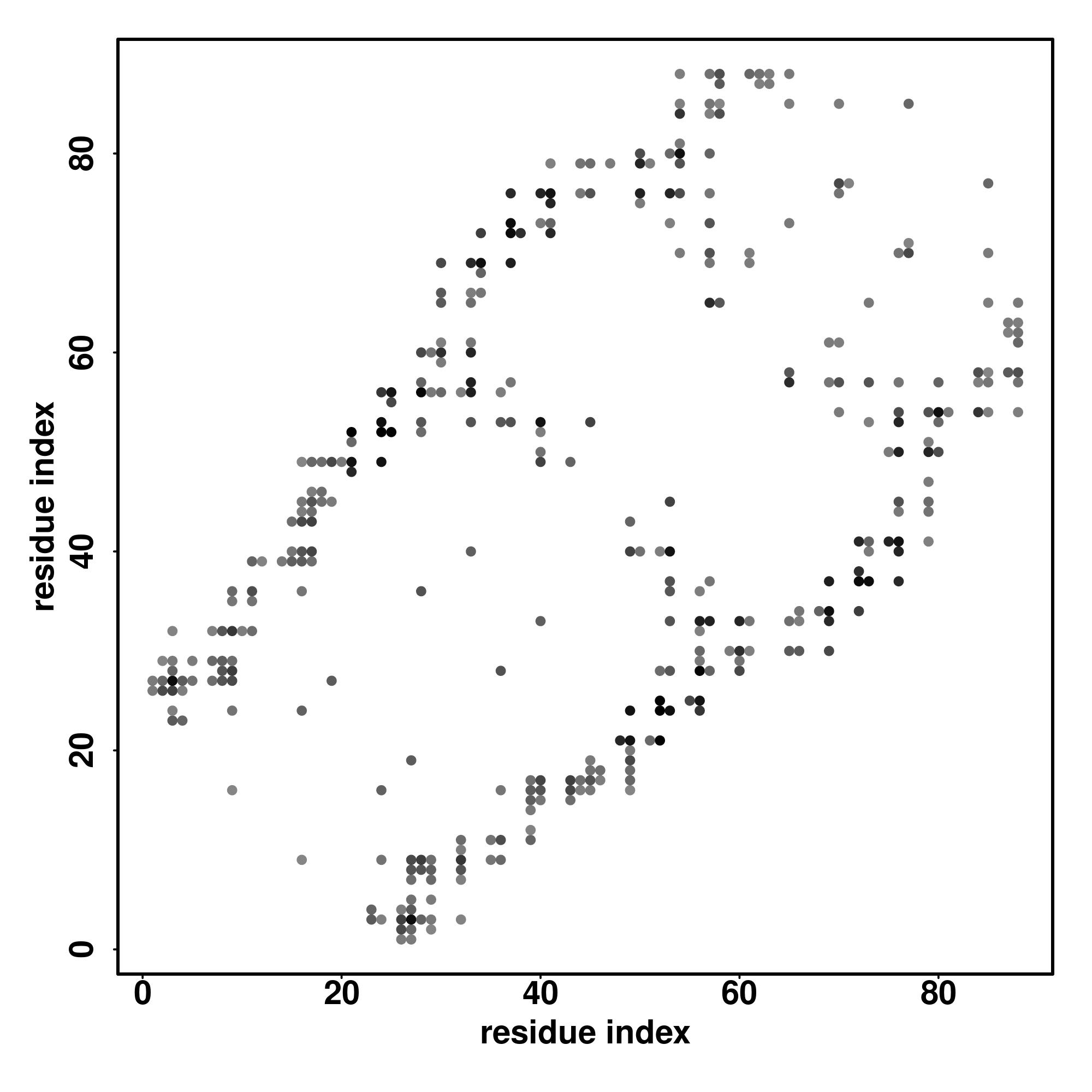 For the contact map, each dot represents a residue pair with predicted contact,