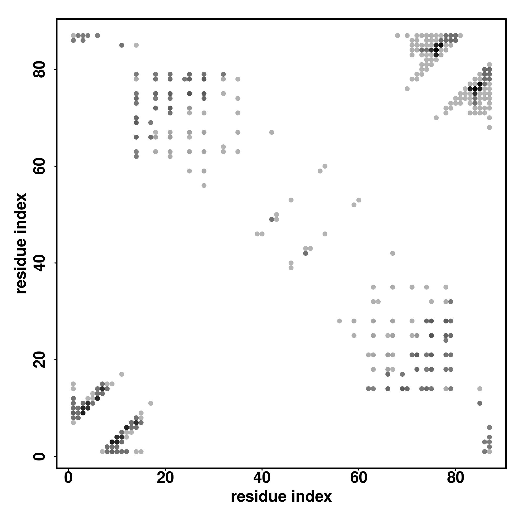 For the contact map, each dot represents a residue pair with predicted contact,