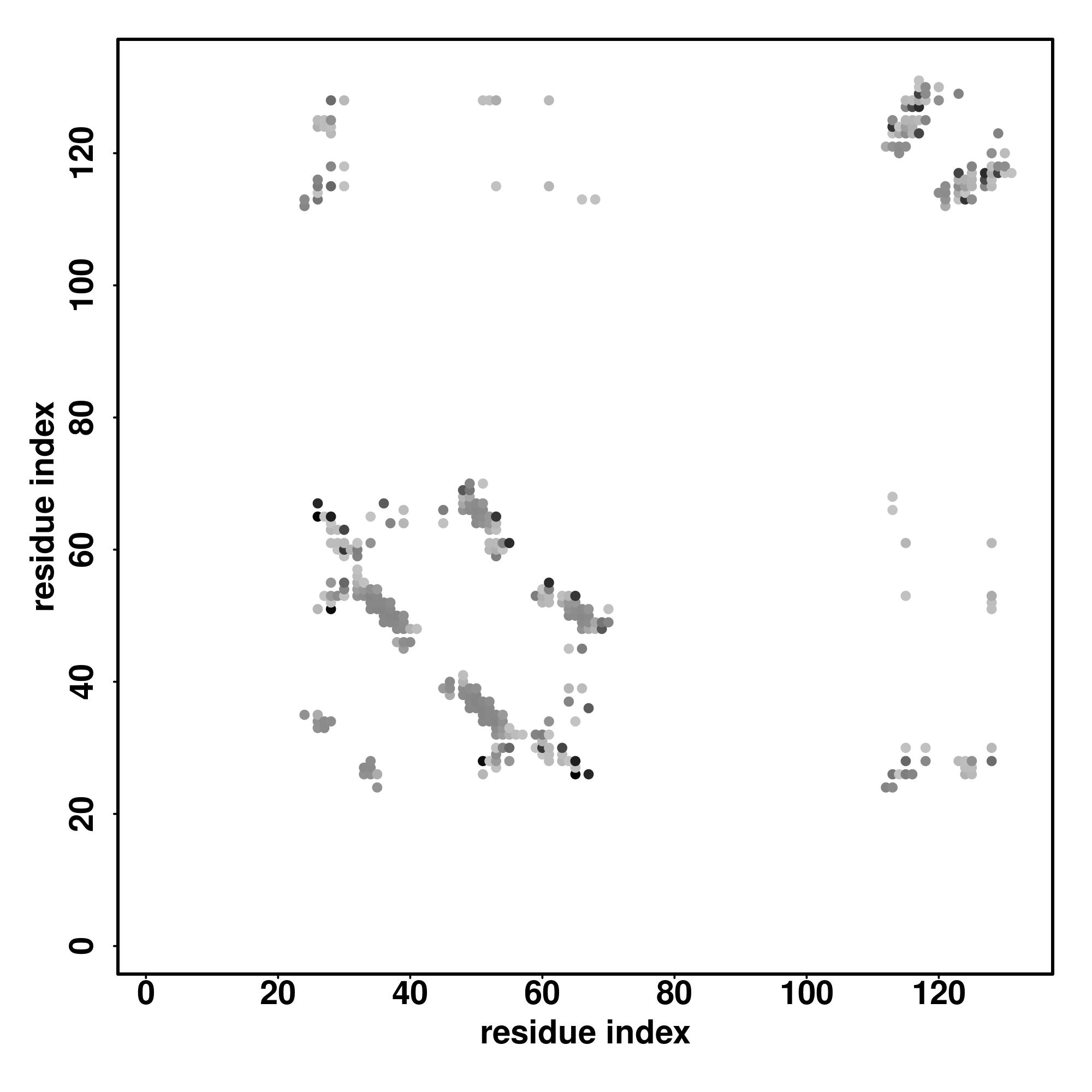 For the contact map, each dot represents a residue pair with predicted contact,