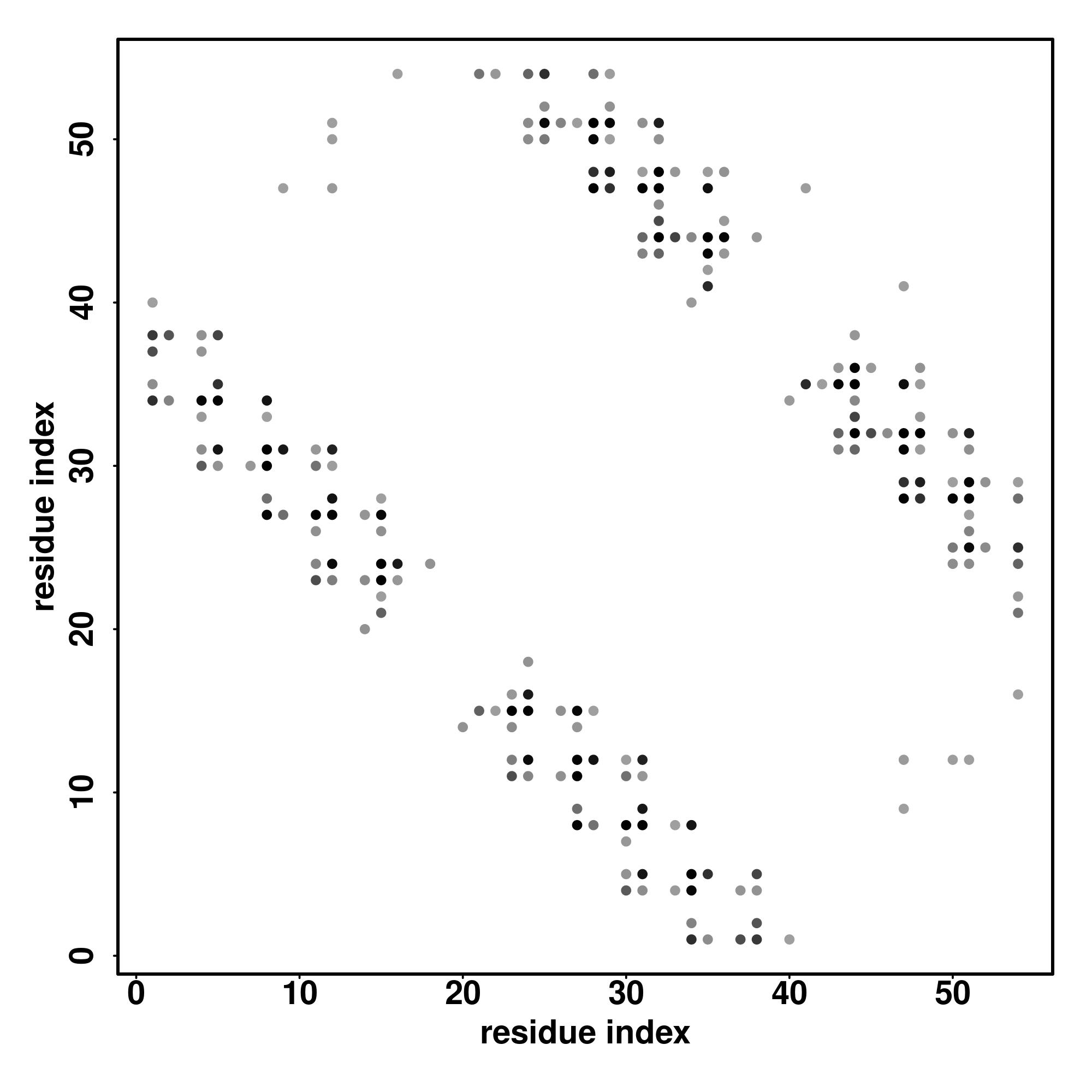 For the contact map, each dot represents a residue pair with predicted contact,