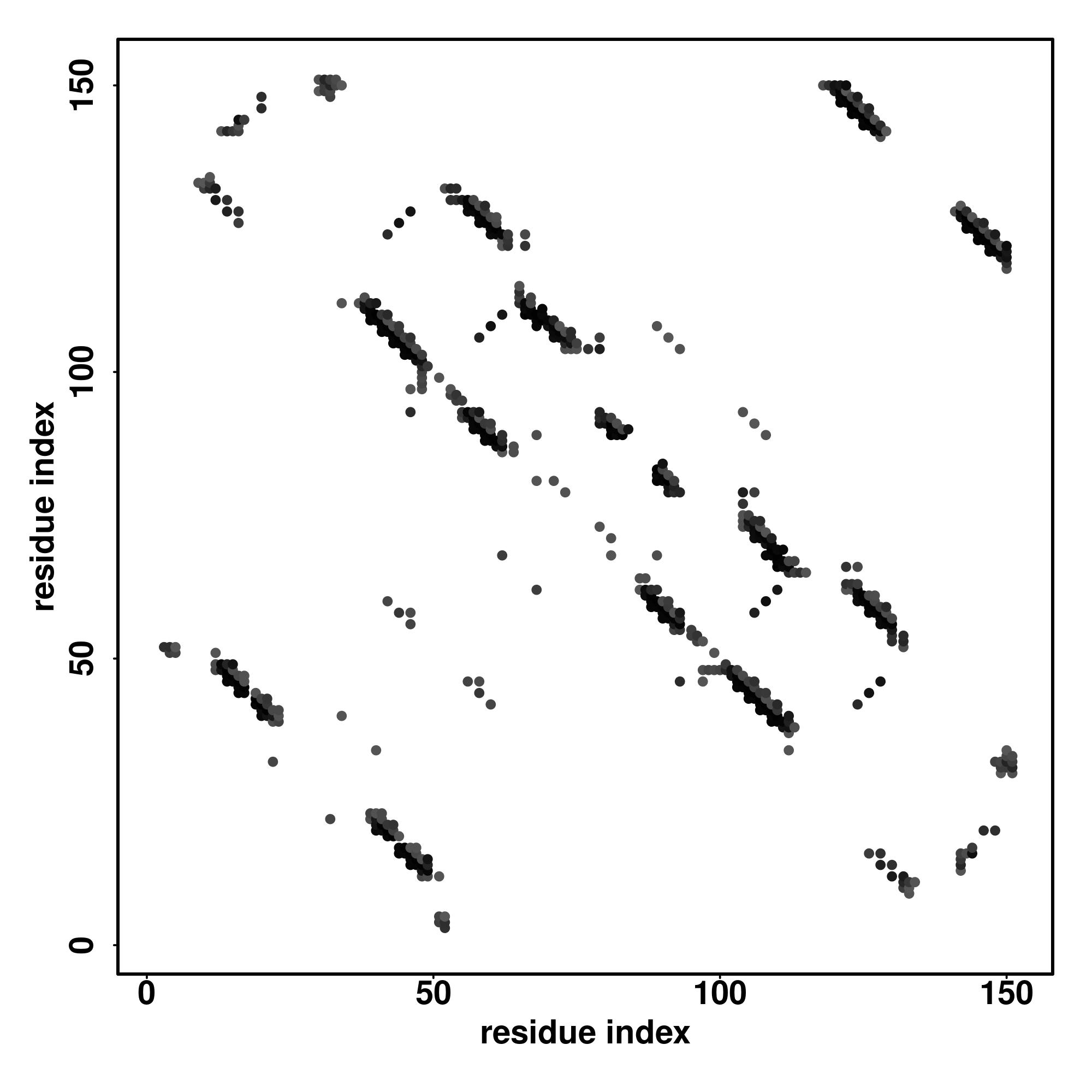 For the contact map, each dot represents a residue pair with predicted contact,