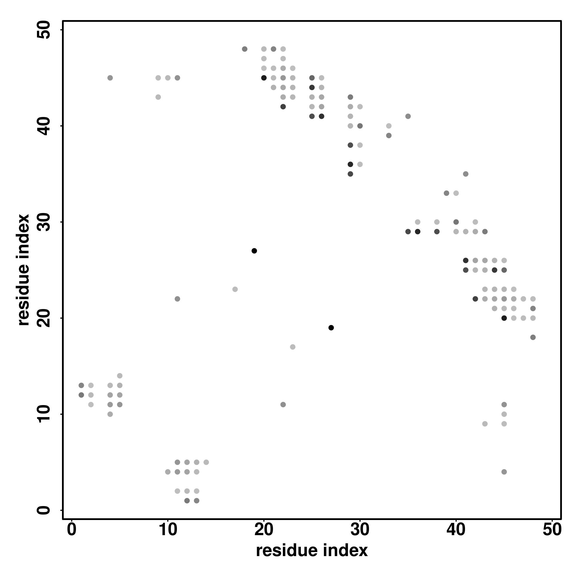 For the contact map, each dot represents a residue pair with predicted contact,