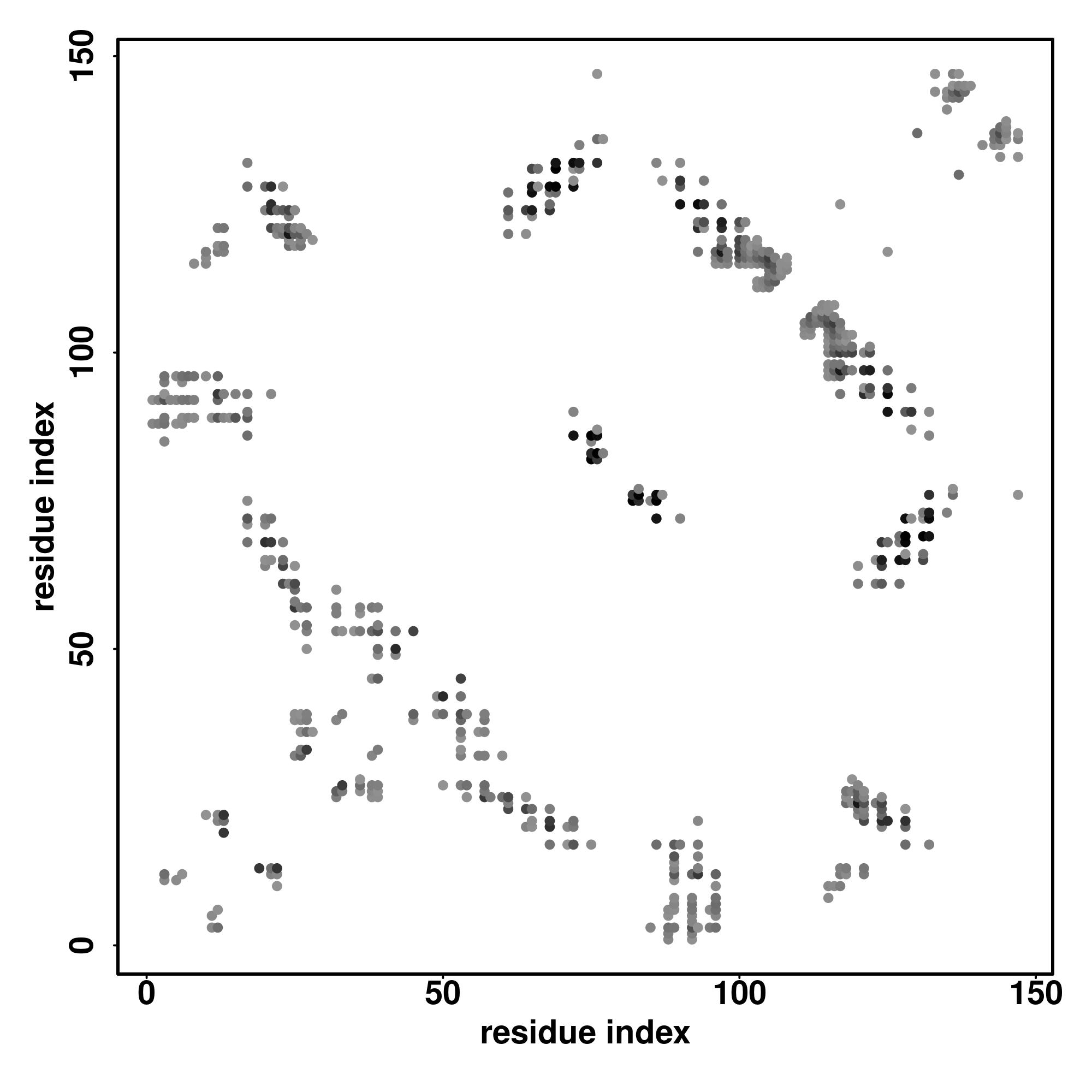 For the contact map, each dot represents a residue pair with predicted contact,