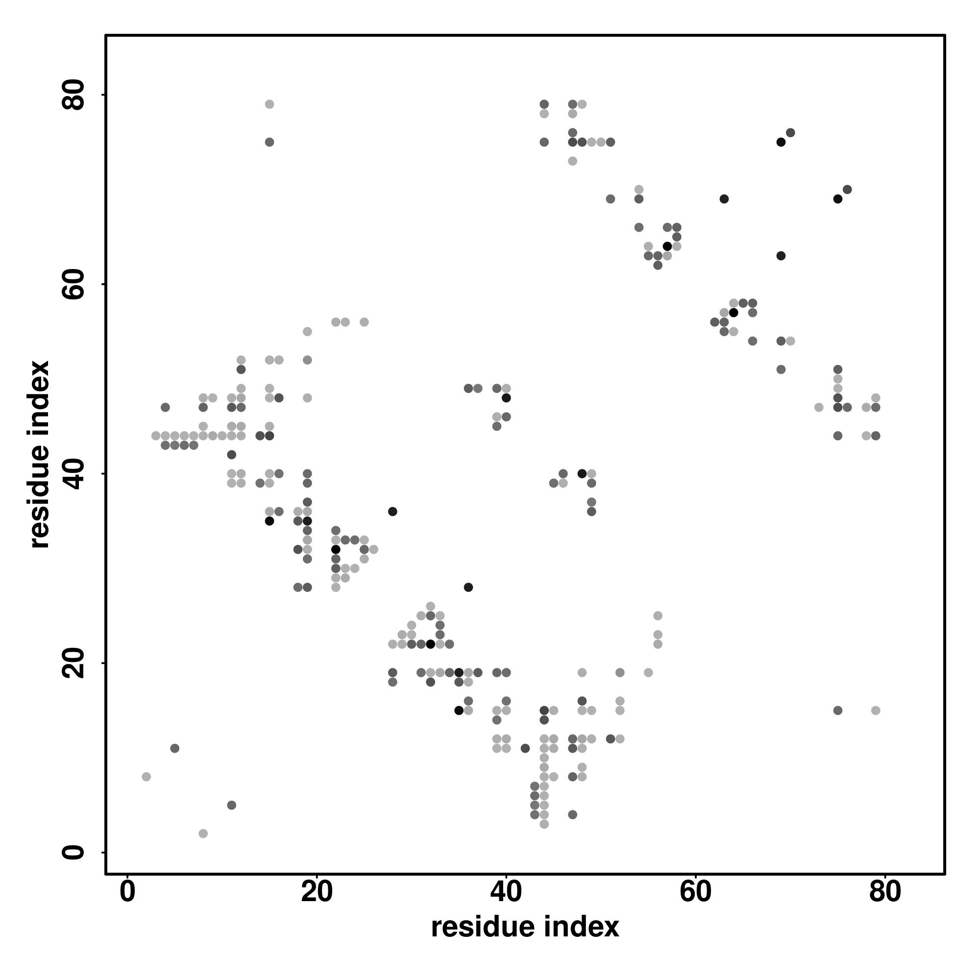 For the contact map, each dot represents a residue pair with predicted contact,