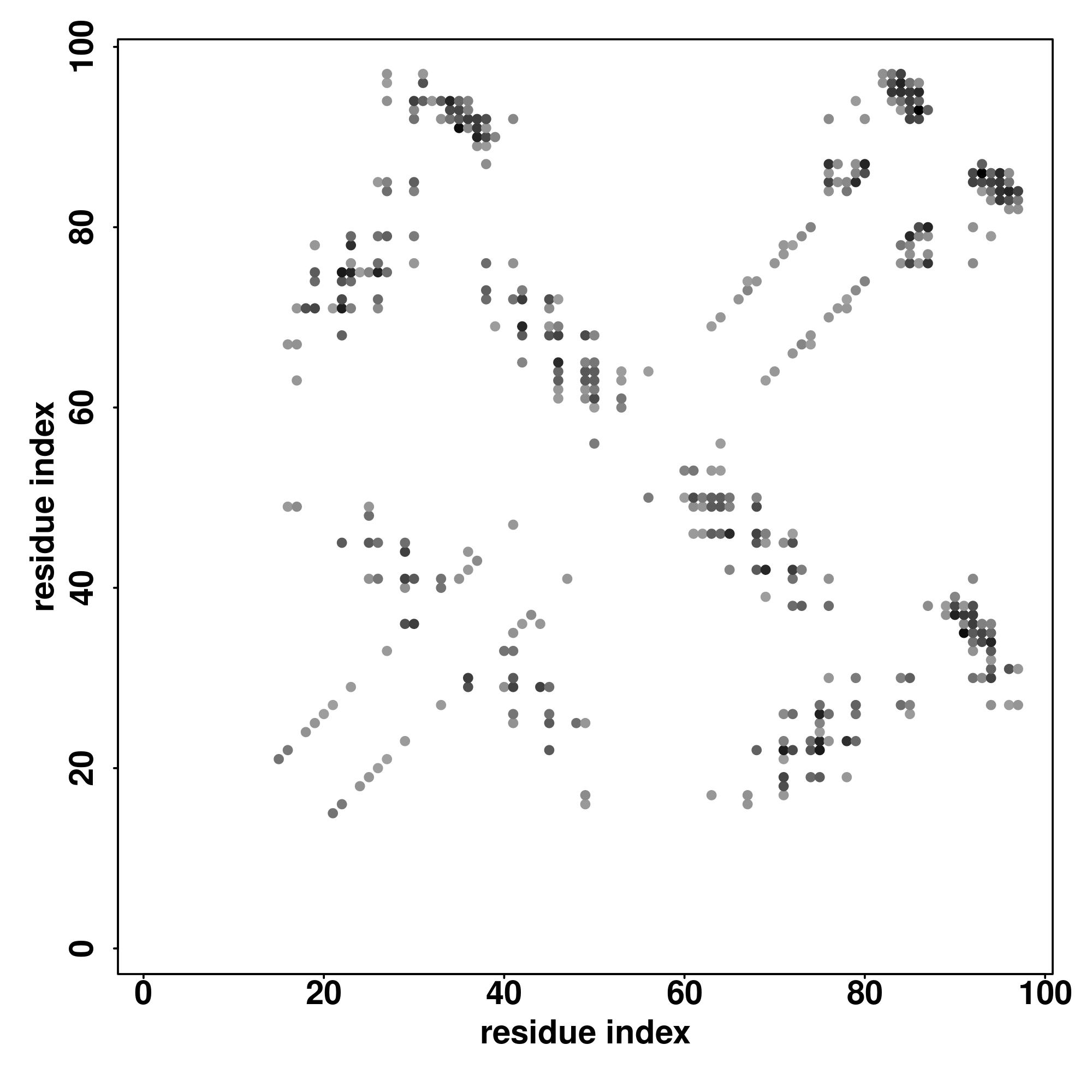 For the contact map, each dot represents a residue pair with predicted contact,