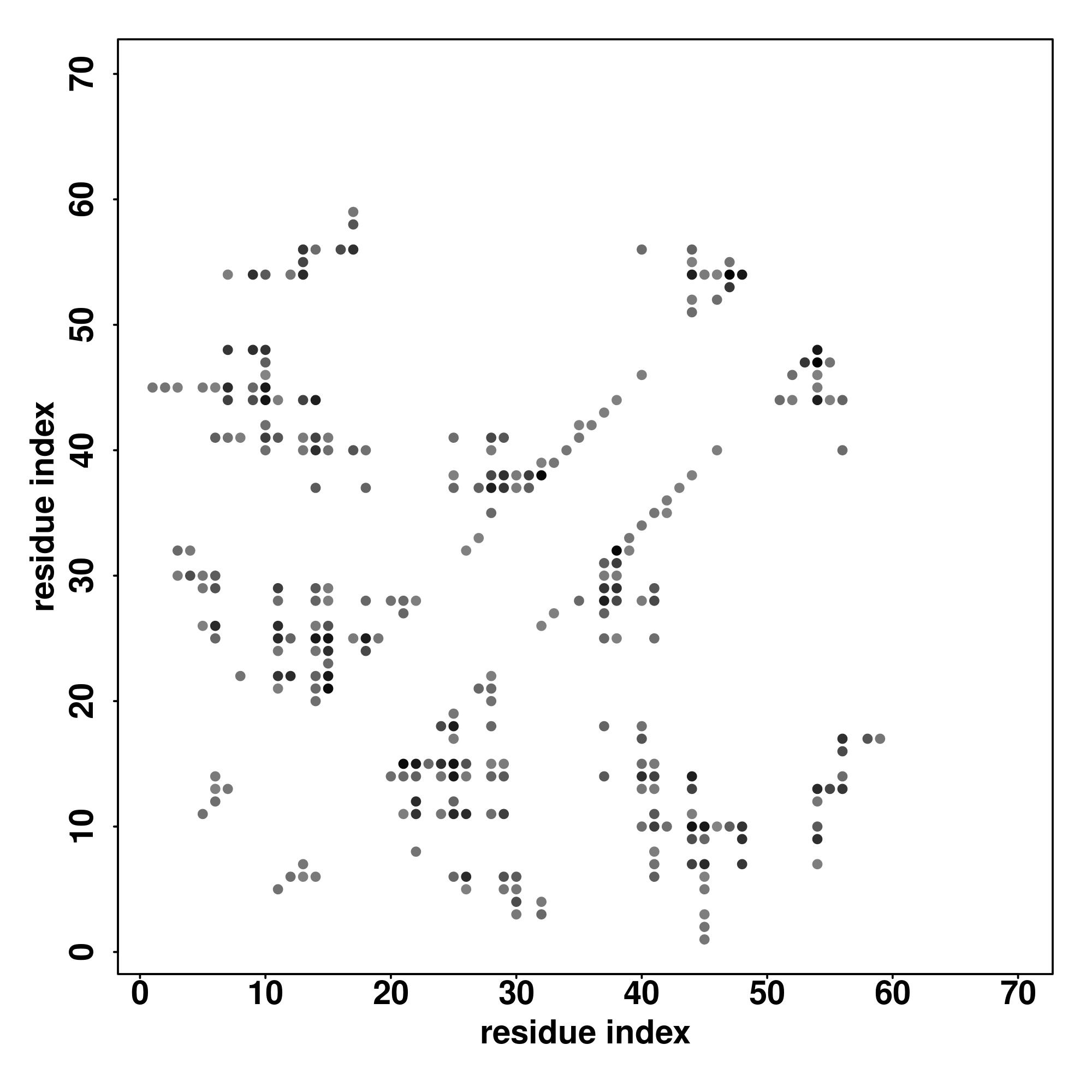 For the contact map, each dot represents a residue pair with predicted contact,
