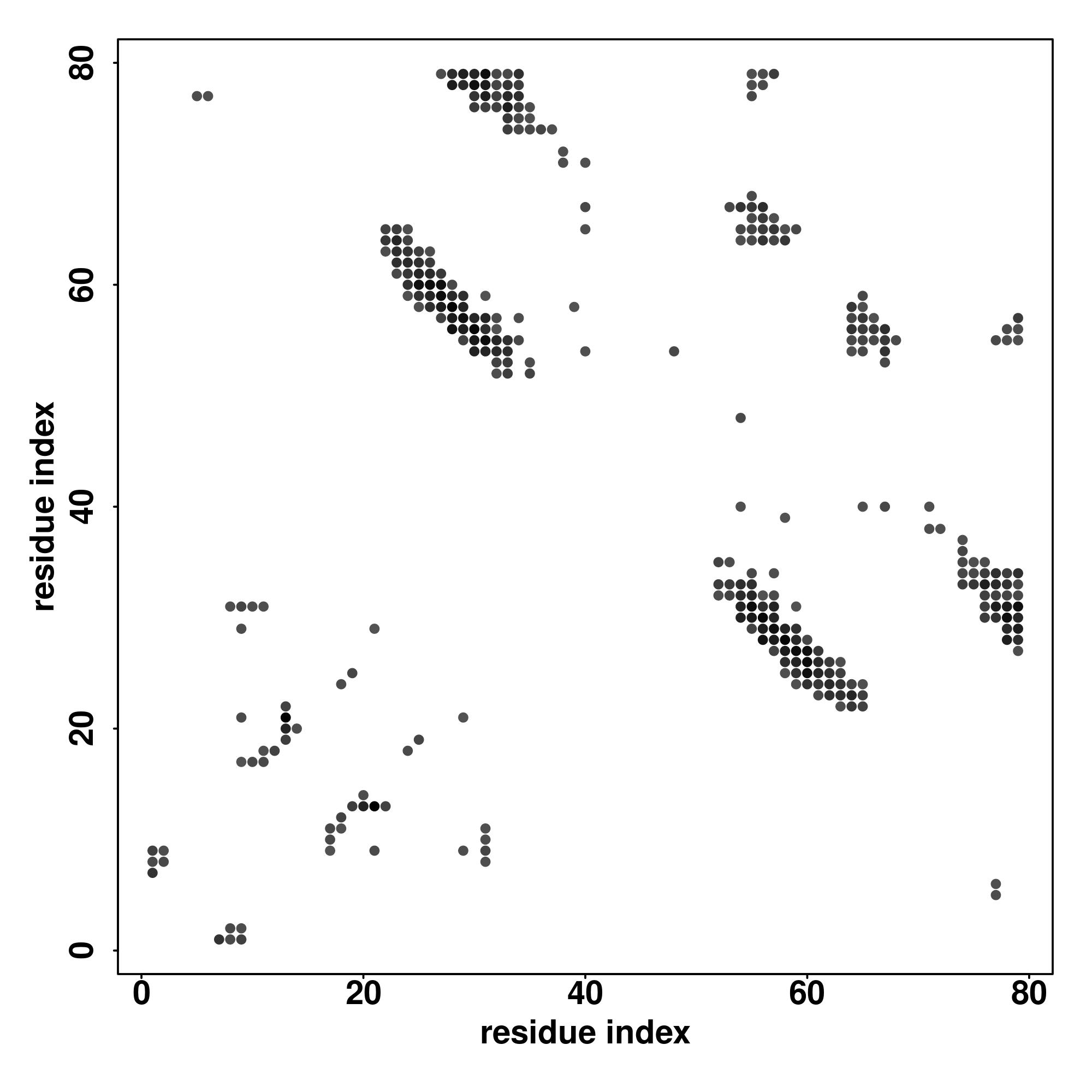 For the contact map, each dot represents a residue pair with predicted contact,