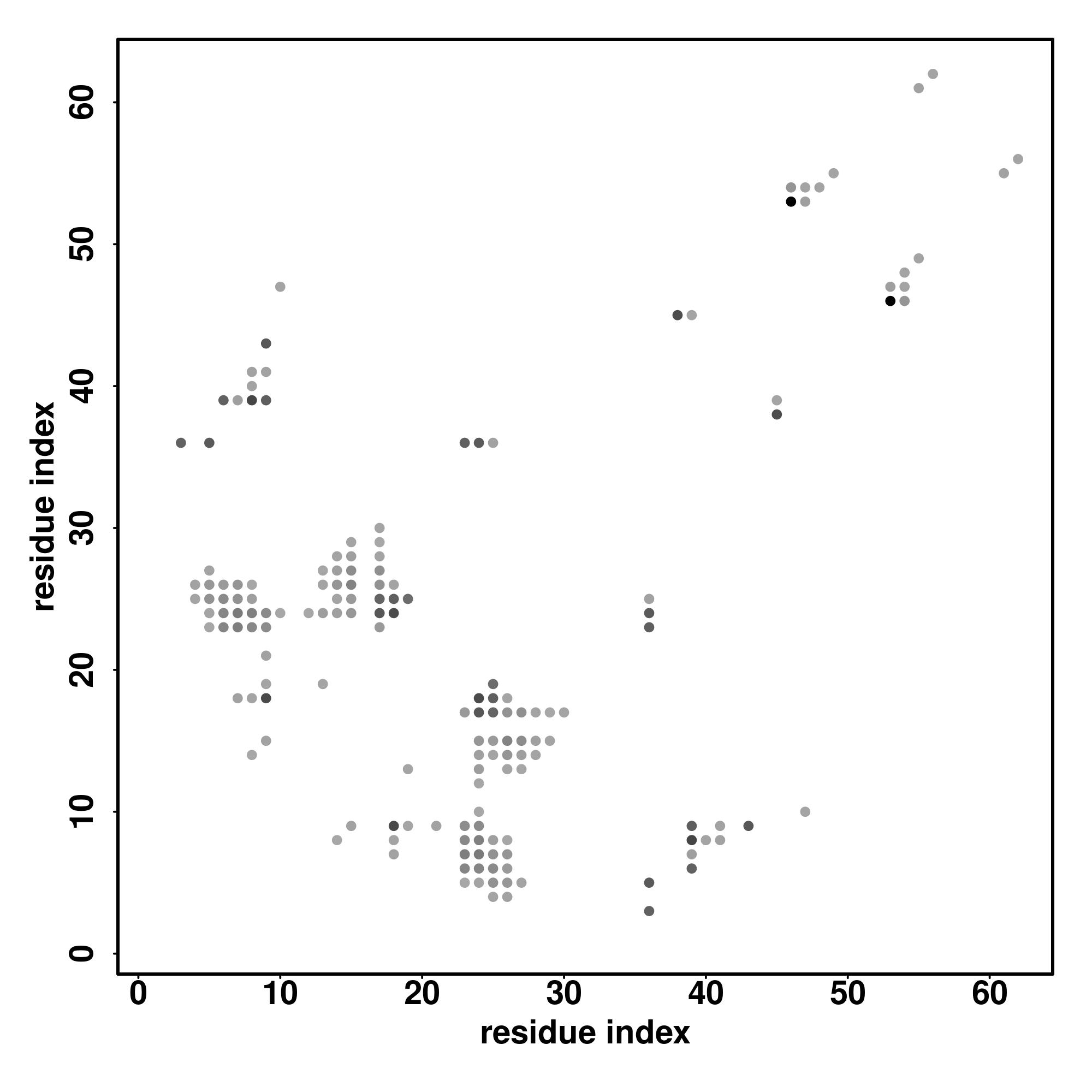 For the contact map, each dot represents a residue pair with predicted contact,
