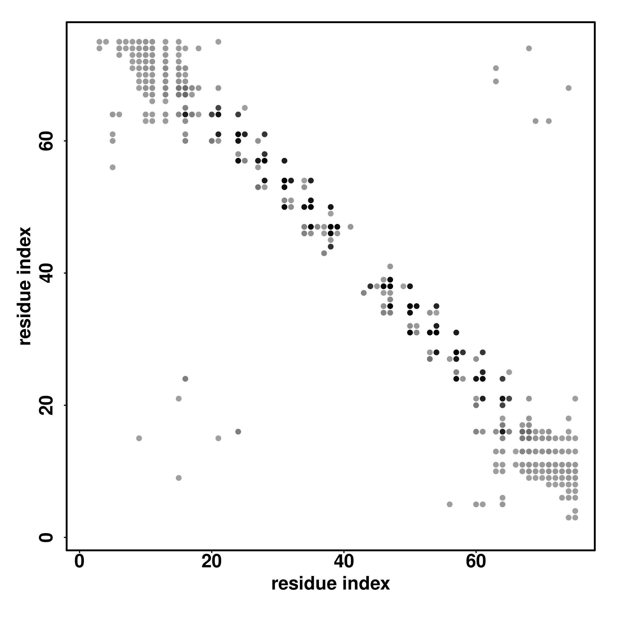 For the contact map, each dot represents a residue pair with predicted contact,