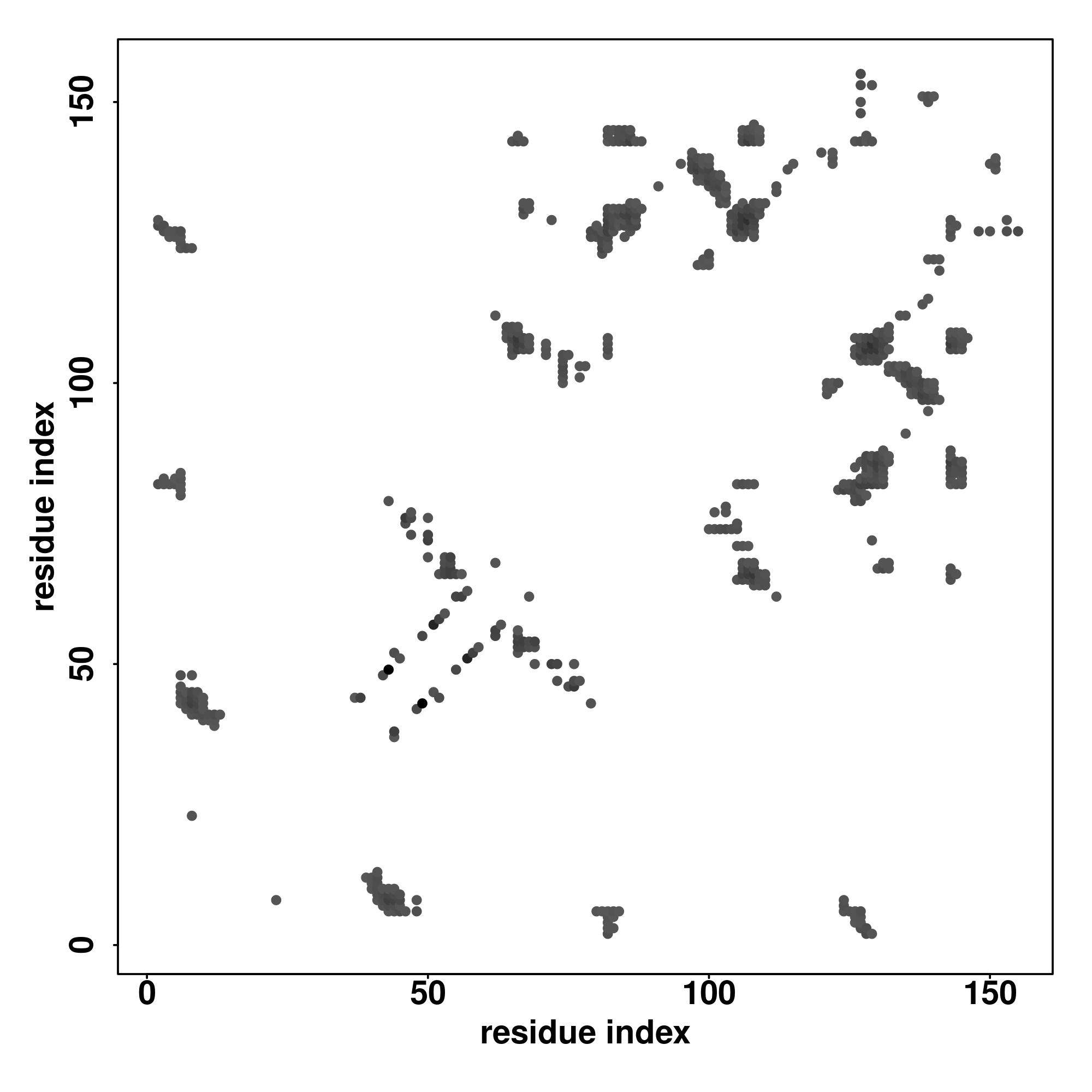 For the contact map, each dot represents a residue pair with predicted contact,