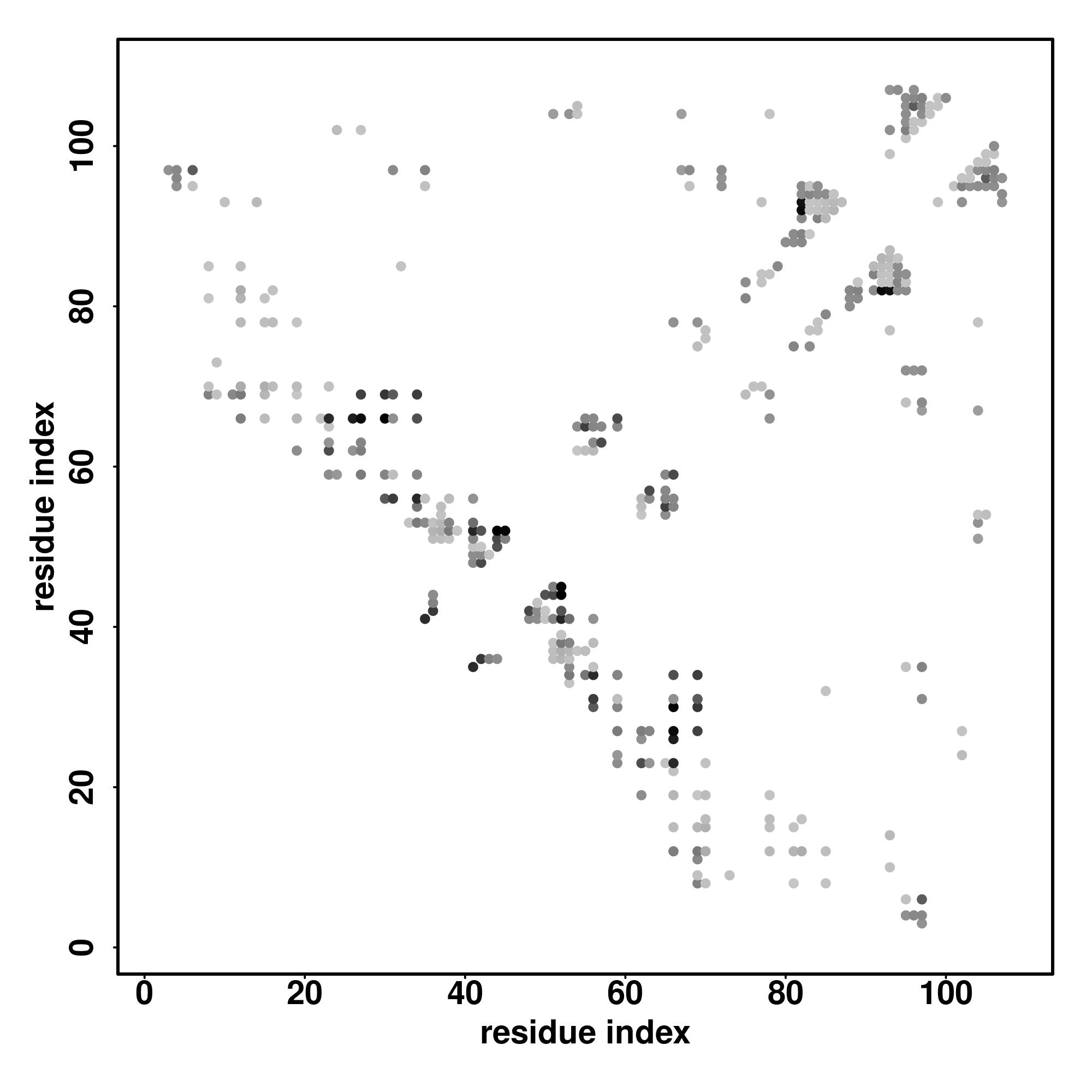 For the contact map, each dot represents a residue pair with predicted contact,