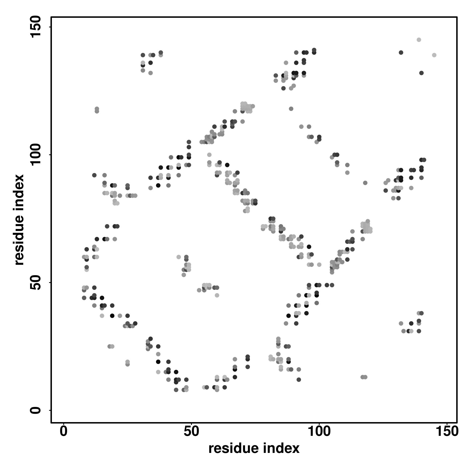 For the contact map, each dot represents a residue pair with predicted contact,