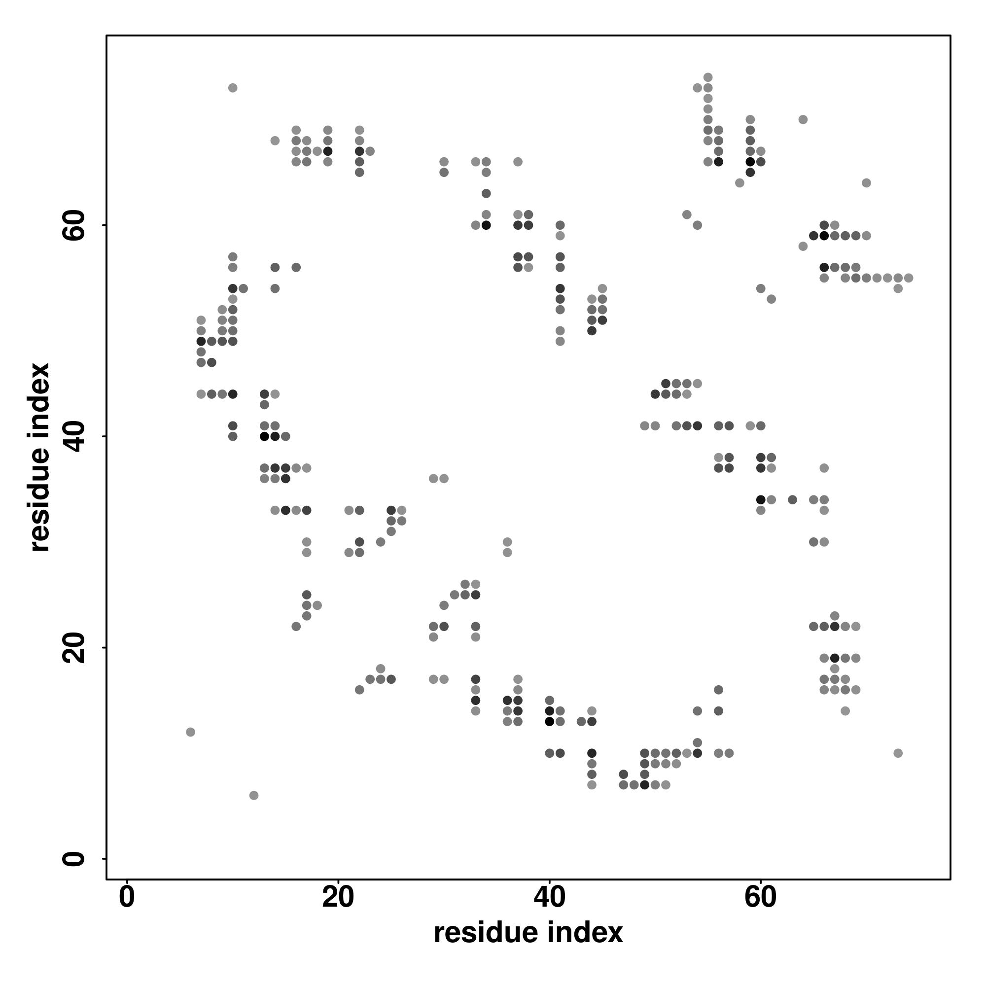 For the contact map, each dot represents a residue pair with predicted contact,